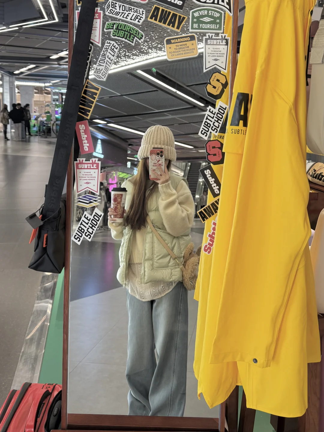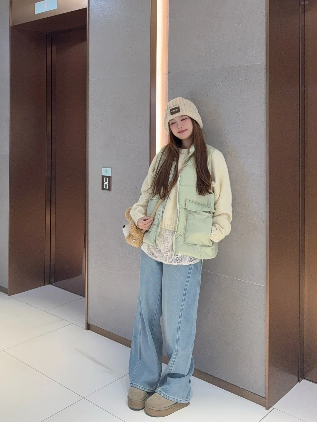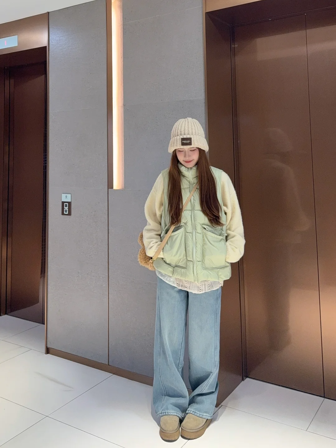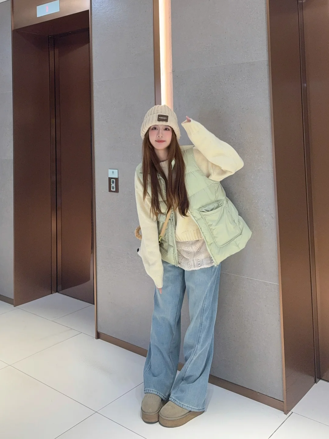👉🏻马甲可以搭配白色棕色卡其色或者黄色的毛衣/卫衣 色系很搭很好看 羽绒马甲就是没那么实用但是又很好看