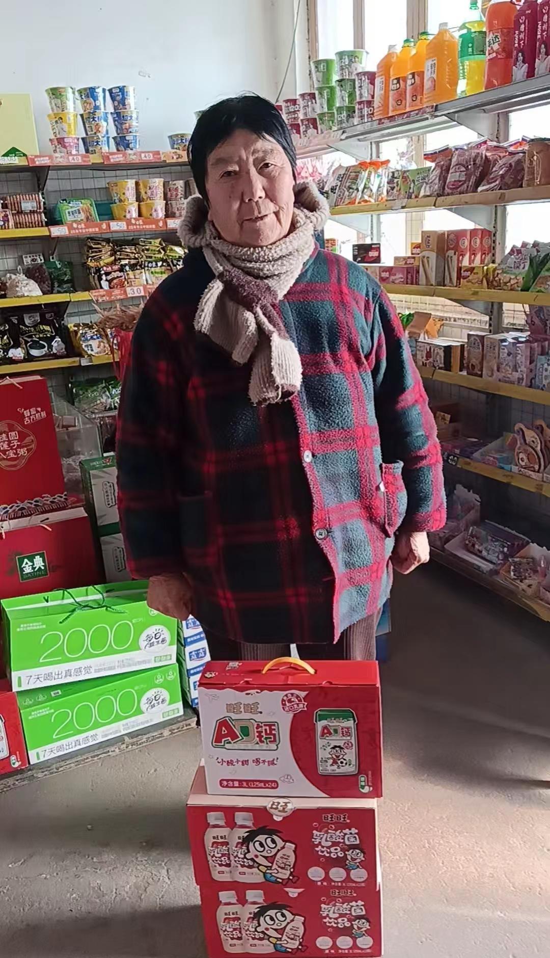 我们组织《最美妈妈》一对一帮扶的家庭,去她们所在的村里商店,领取了三月份所需要的