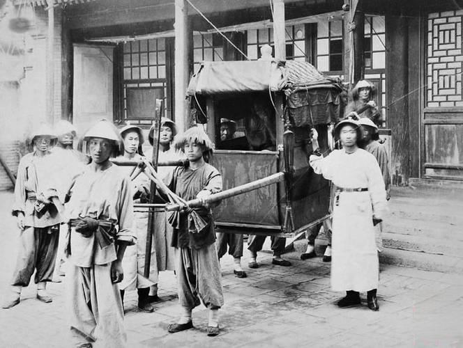 清末,官员日常出行,这顶轿子是清代典型的暖轿,带封闭布帘、顶棚,既能遮风挡雨,又能完全遮挡轿内官员的身形,保证官员的隐私与威严。 清代有严格的《乘舆律例》,对官员乘轿的抬轿人数、样式有明确法律规定,地方官中,知府、道员可乘四抬暖轿;知县仅能乘二抬;总督、巡抚可乘八抬,京官中,三品以上可乘四抬,四品以下仅二抬。因此,这顶四抬大轿直接说明,轿内的官员,至少是知府级别的中高级官员,身份显赫。