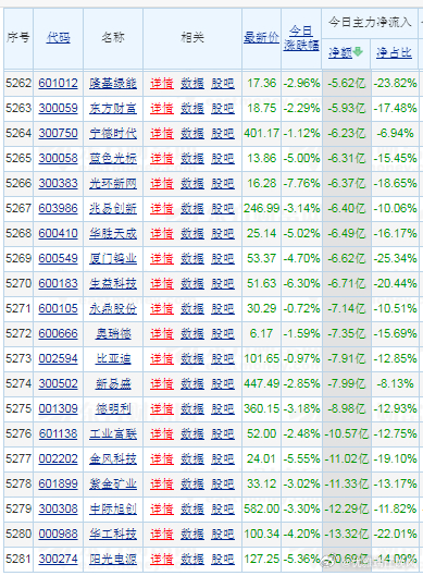 2、主力资金:个股遭殃