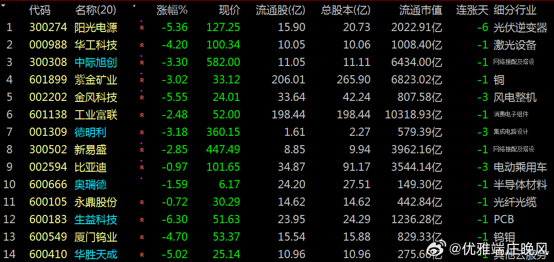 视野盘面:整体呈现:个股普跌。其中阳光电源等:龙头股遭主力大幅抛售。与市场对:中美关税政策落地担忧密切相关。4月2日美国:公布对华关税审查结果,引发出口依赖型板块承压,叠加北向资金流出及市场情绪走弱,导致高成长板块集体回调 。今日透视:主力资金:流出幅度较大龙头股票: