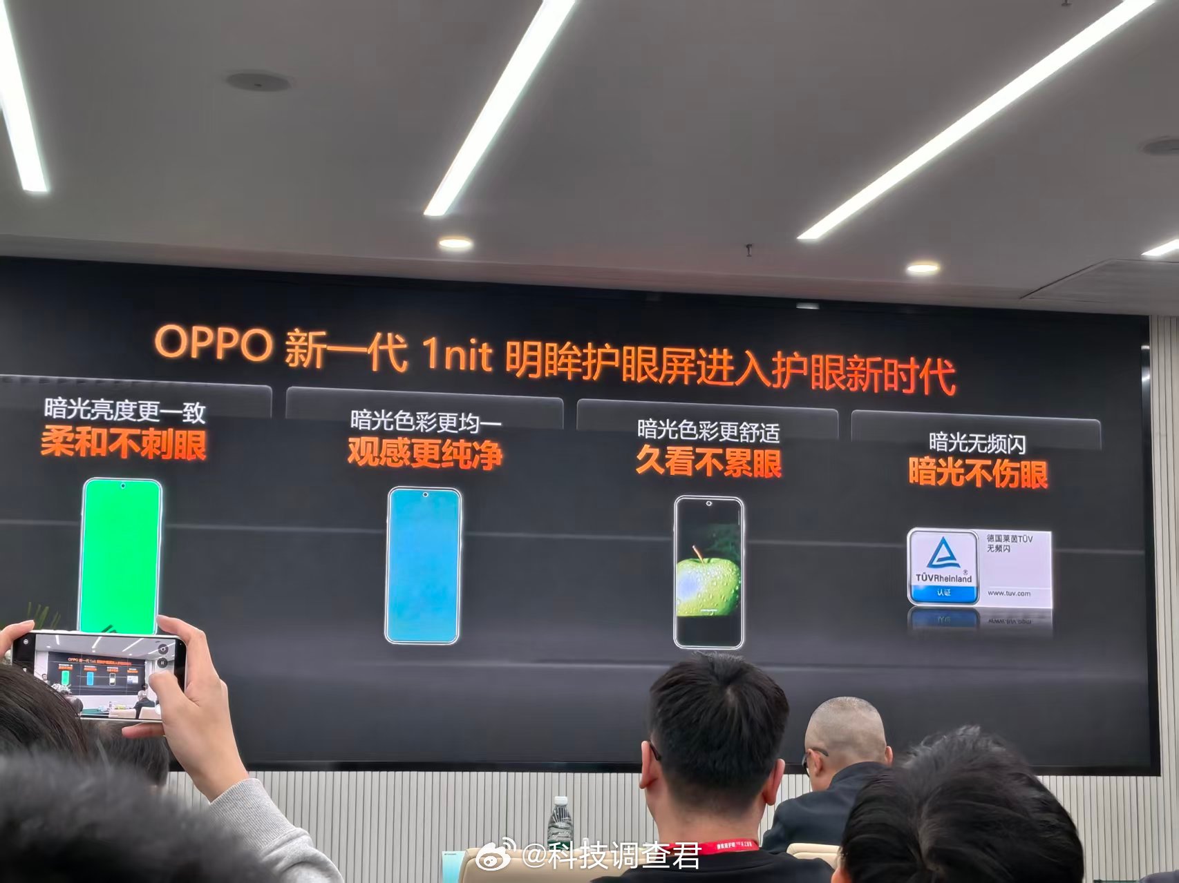 它这次用的是天马U9 Pro发光材料的1.5K直屏,四边超窄。重点是他们那个“1nit 明眸护眼”技术,简单说就是你把亮度调到最低、晚上关灯在被窝里刷手机时,屏幕不发灰、不花脸,色彩还很均匀。加上3840Hz的高频调光,没有那种让人眼酸的频闪,还拿了莱茵认证,久看不累。别家做不出来的,OPPO已经自己建产线、搞定制,硬是把这块屏给造出来了。