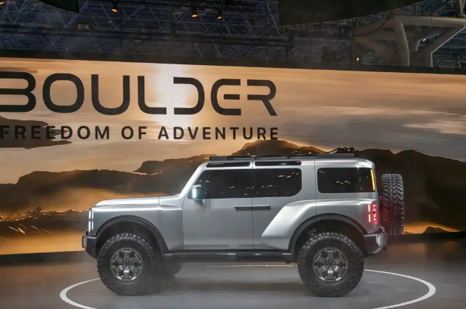 2026纽约车展:现代BoulderConcept首发很MAN的硬派越野车 现代Boulder概念车展现了其坚固的车身形态,以及相当硬核的姿态,现代想表达的是这款车拥有“钢铁“之躯,整个车身都是钢铁的银色系,浓重的金属质感。 整个外观融合复古与未来感的设计,并有着较高的离地间隙、接近角与离去角,该车型还配备了37英寸的超大泥地胎。车尾配备双铰链尾门,可两侧开启,尾窗可电动升降,方便后备厢放置超长物品,并增加通风性。该车型还预留了大量的改装空间。 内饰则采用了大量的耐磨的材质,内饰不仅硬核也极具科技感,比如前风挡具备投影系统,可显示车辆的信息,越野信息通过中控台上的几个小屏幕展现。整个中控台的设计机械感十足,有着浓重的工业风,再经过氛围灯的装点,极具魅力。