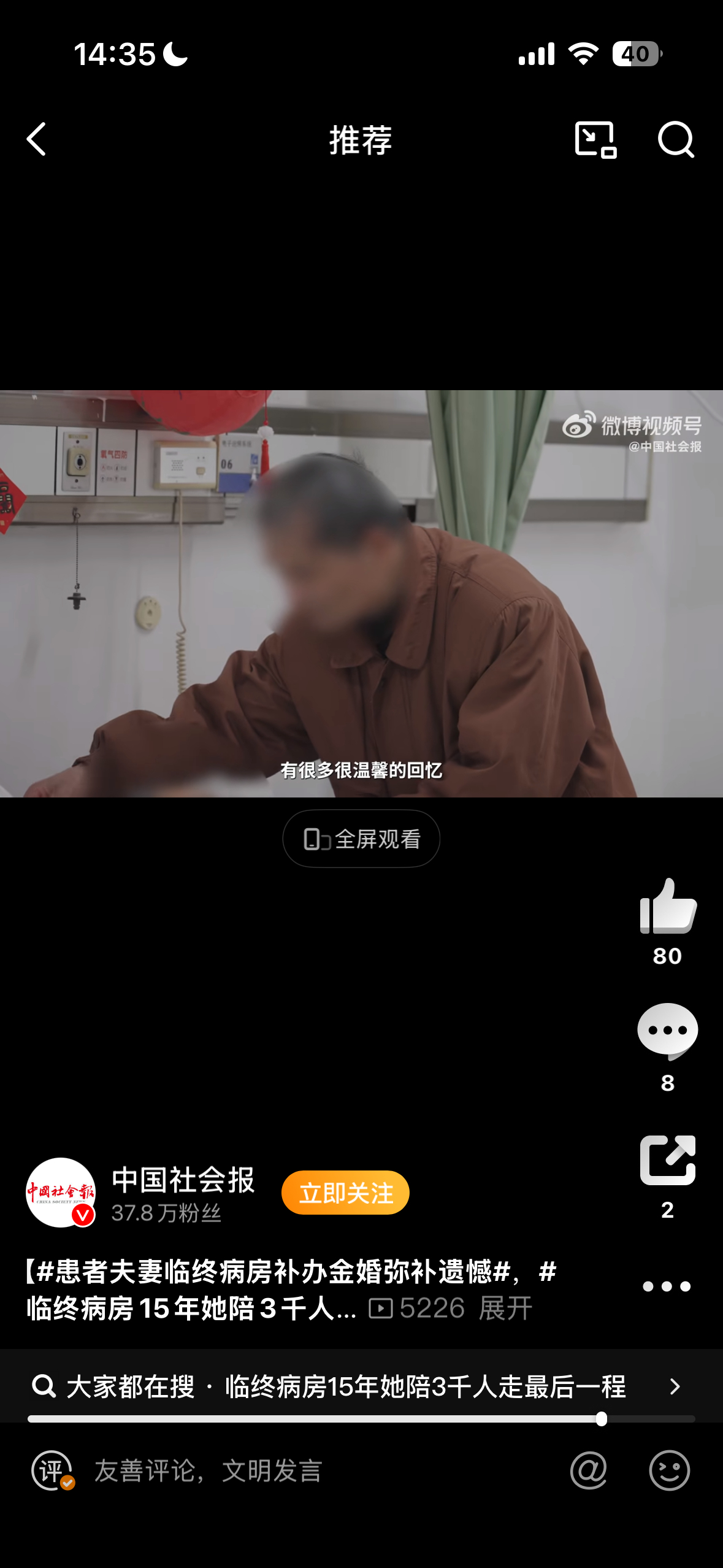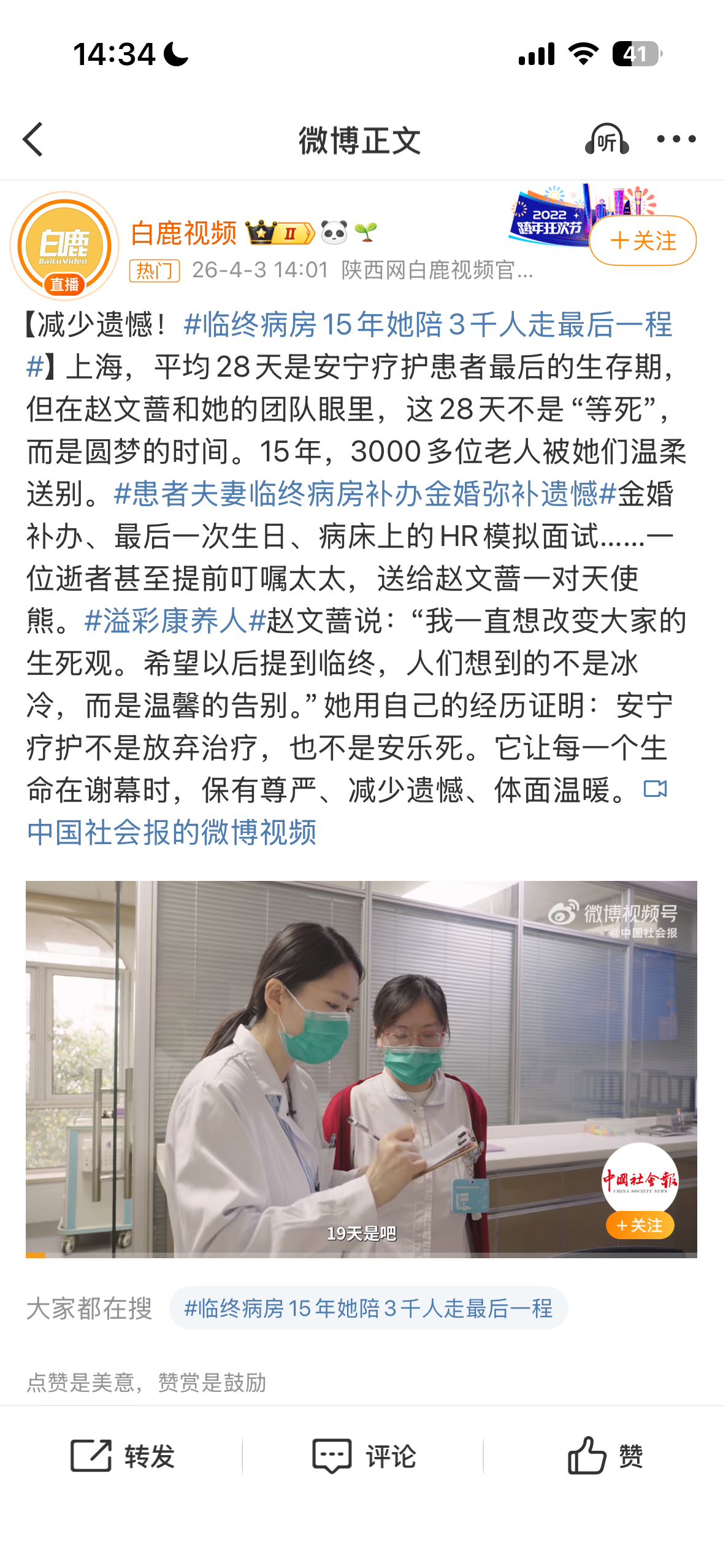 病房里的金婚,是生命尽头最温柔的圆满。五十年风雨相伴,遗憾未办一场仪式,医护与社工悄悄圆梦,鲜花、头纱、紧握的手,把亏欠的浪漫还给彼此。患者夫妻临终病房补办金婚弥补遗憾临终病房15年她陪3千人走最后一程