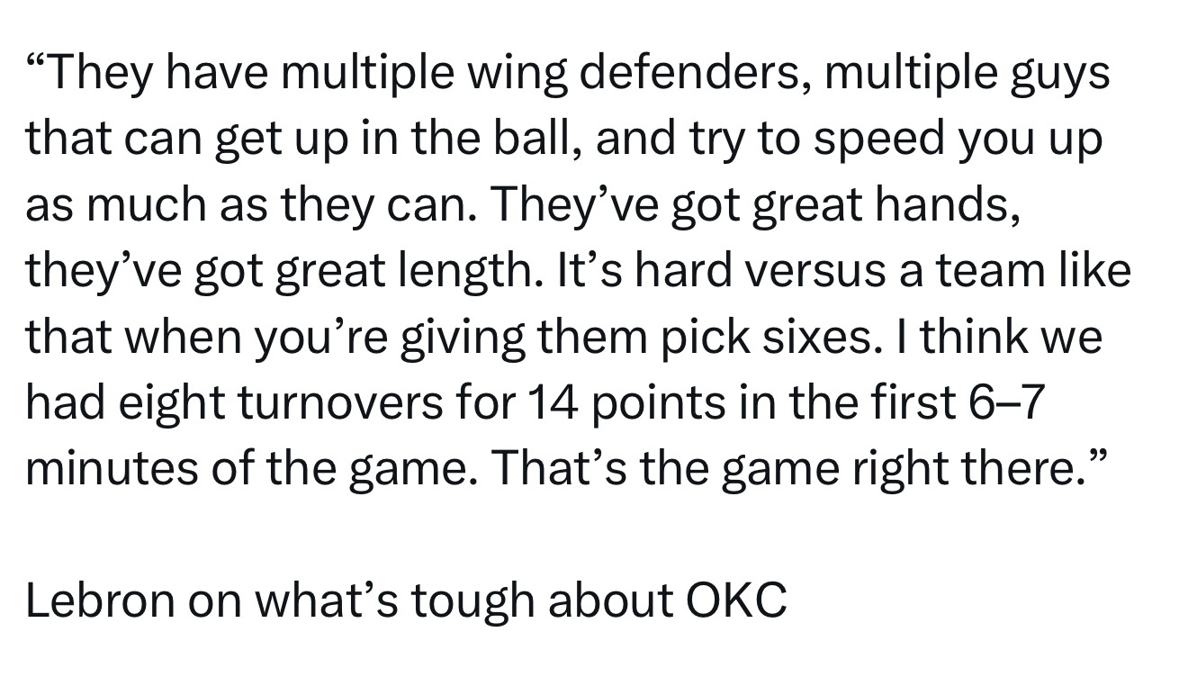 詹姆斯谈及对阵雷霆的难点: