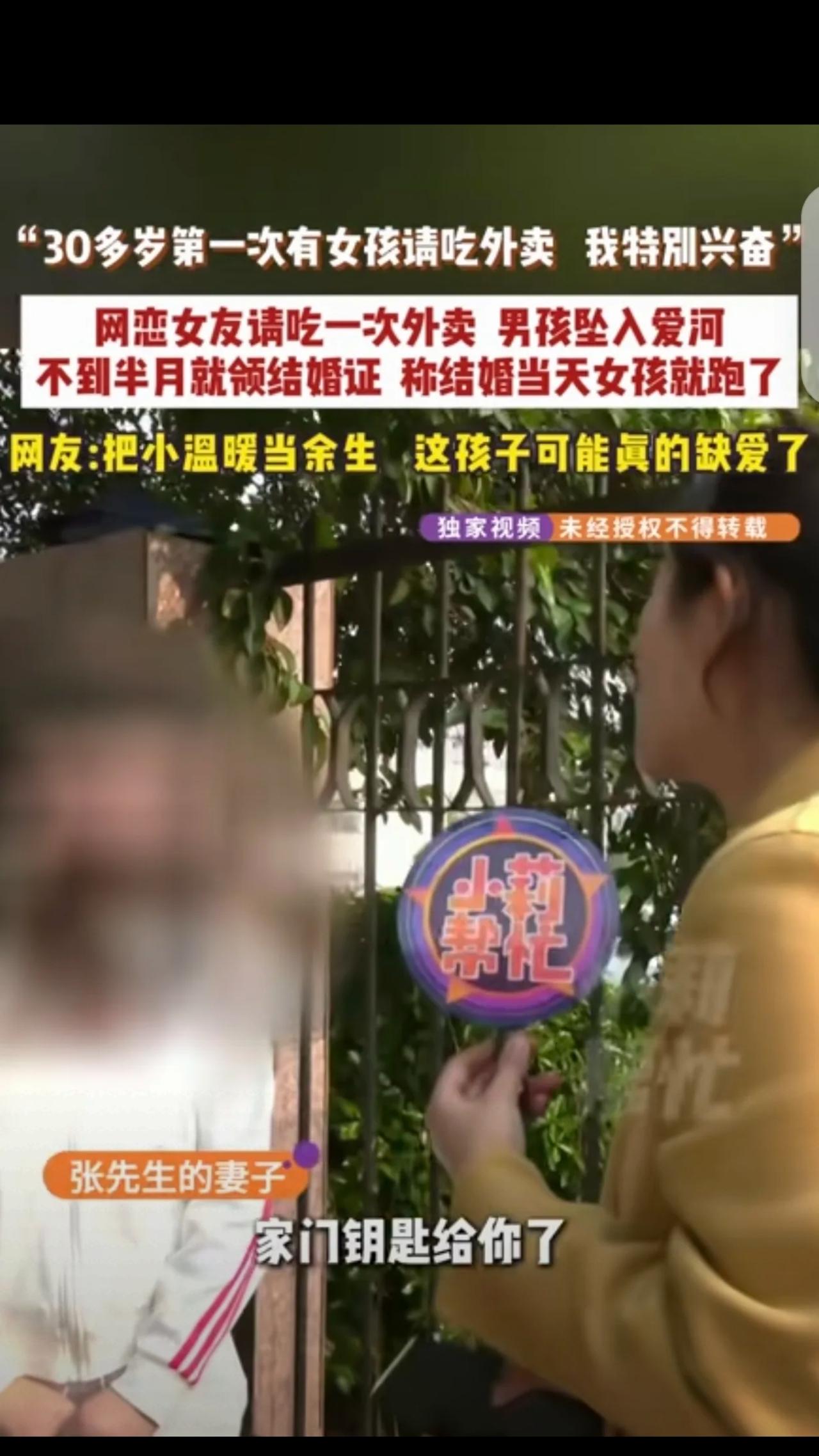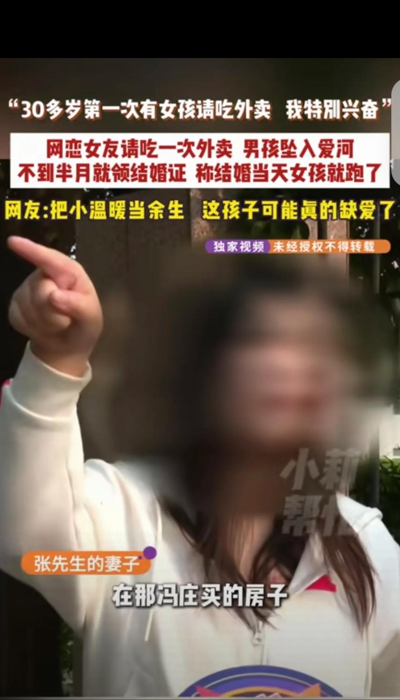 河南商丘,一30多岁男子,在网上认识一女子,当天见面,女子请他吃了顿外卖,直接把男子感动哭了,他30多岁了,第一次有女孩请吃外卖,吃完外卖15天,2人就领证结婚,他给了18.8万彩礼,1.1万见面礼,6万三金,可万万没想到,结婚当天下午,女子就跑路了。结局真是小说都不敢这么写。 河南商丘30多岁的张先生,被催婚催了这么多年,圈子窄一直没对象,心里又急又自卑,本来只想在网上找个伴,没想到踩了个天大的坑。 2025年1月底,他网上刚认识一个女生,没聊几句就见面,女生全程大方,主动请他吃了顿外卖。 就这一顿普普通通的外卖,直接把张先生感动哭了! 活了30多年,第一次有女生主动请他吃饭,他当场就觉得遇到了真爱,觉得对方是真心疼他、懂他,瞬间放下所有防备。 结果感情光速升温,仅仅15天,俩人就领证了! 为了留住这份“来之不易的幸福”,张先生掏空家底,18.8万彩礼、1.1万见面礼、6万三金,一口气拿出25.9万,满心等着过好日子。 谁能想到,婚礼当天下午,新娘直接消失了! 电话不接、消息不回,张先生慌得四处找人,最后找媒体才联系上,女方居然说“去做直播上班了”,还倒打一耙,说张先生不给新房钥匙,不给钥匙就不回家。 这借口也太扯了吧?哪有新娘结婚当天脱了婚纱就跑路,连个招呼都不打的? ✅网友评论炸锅了: “心疼大哥,30多年没被人温柔对待过,一顿外卖就当成了救赎,太好骗了” “这明摆着就是骗婚啊!冲着彩礼来的,拿到钱立马跑路,太缺德了” “真的别闪婚!15天连人家长啥样都没记熟,就敢给20多万,教训太惨痛” “换我我也不敢给钥匙,万一给了,家都被搬空,最后人财两空哭都没地方” 说实话,看完特别感慨,张先生的遭遇看似荒唐,其实藏着很多大龄单身男女的无奈,被催婚逼得急,一点点温暖就当成救命稻草,可婚姻真的不是一时感动就能换来的。 我的看法: 感动从来不是婚姻的底气,15天的闪婚,连对方的人品、背景、底细都没摸透,再真诚的付出都可能打水漂。女生一顿外卖的小恩小惠,精准戳中了大哥的软肋,说白了就是一场精心设计的骗局,利用的就是他渴望成家的心理。 📌法律提醒: 俩人虽领证,但压根没共同生活过,按照民法典婚姻家庭编解释,张先生完全可以起诉要回彩礼!如果女方就是以结婚为幌子骗钱,还涉嫌诈骗罪,要负刑事责任! 现在大哥进退两难,真的希望他能尽快拿回彩礼,及时止损。 也劝所有单身的朋友:结婚千万别急,慢慢来,看清人再付出,别让一时的冲动,毁了自己的积蓄和真心!