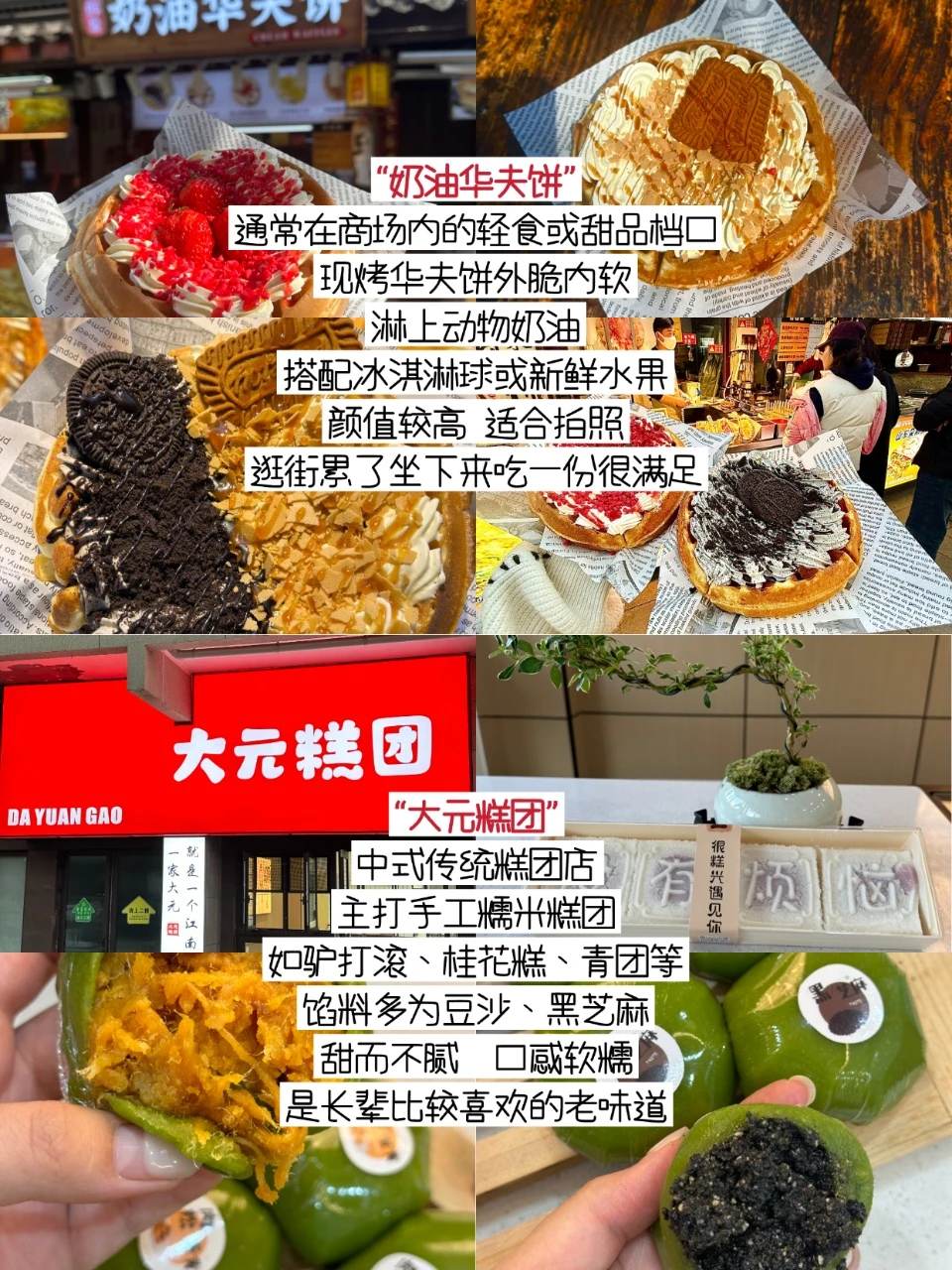 一般在商场里的甜品档口,现烤的华夫饼外脆里软,淋上动物奶油,再配个冰淇淋球和水果。逛街累了来一份挺满足。
