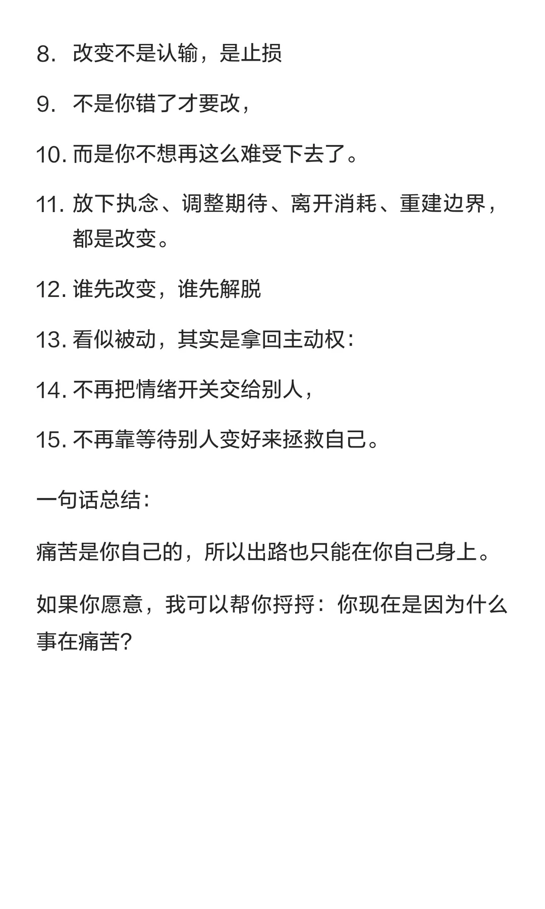 我们很多人曾经努力去抱怨,职责,要求,控制周围的人,想别人改变,来满足自己的需求。 可是很少有人明白,满足自己需求的永远只能是自己。不可能是别人。 我们最愚蠢的认知就是把自己的情绪交给别人,把自己的需求交给别人。 却不知道,只有自己掌握自己的所有才可能真正自在解脱。 26年觉醒之年,4月公益随喜疗愈。