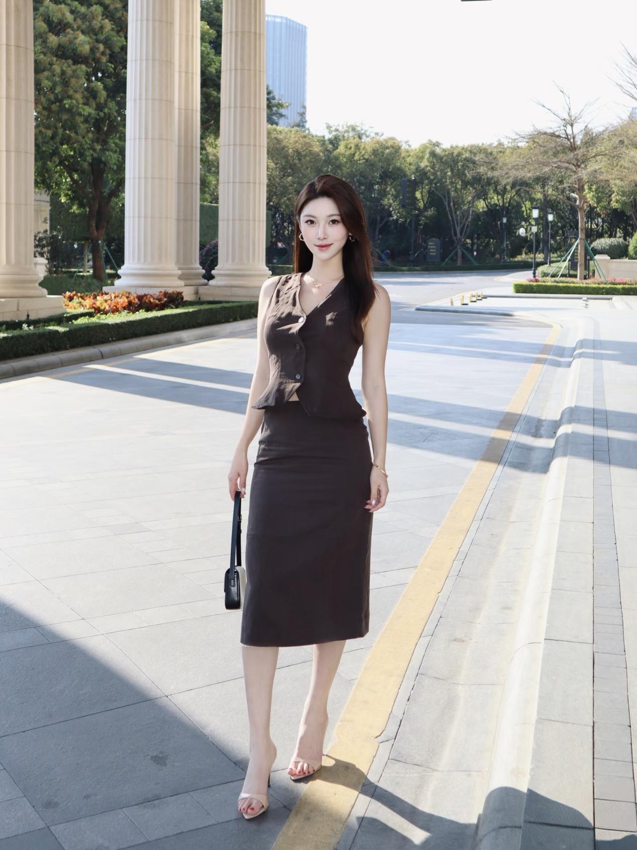 你认为最有气质的美女是谁?淡淡的妆容,长款套裙的穿搭,通勤逛街都适合,给人一种时