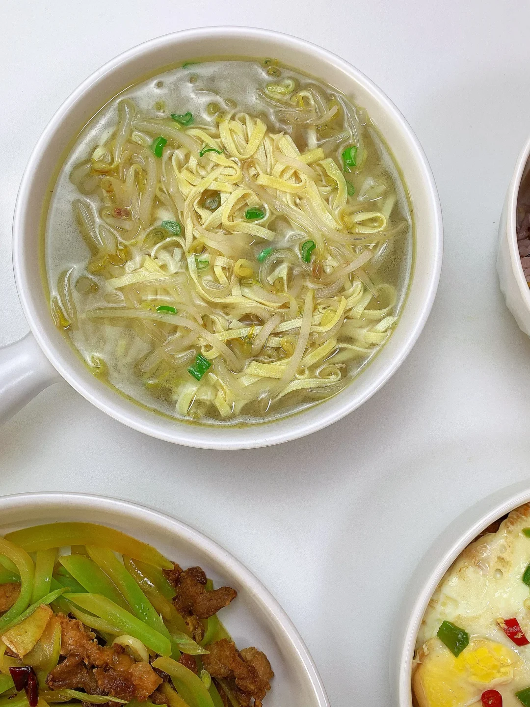 里脊肉🥩 | 青笋 | 鸡蛋 | 金针菇 | 青椒🫑 | 绿豆芽 | 豆腐皮
