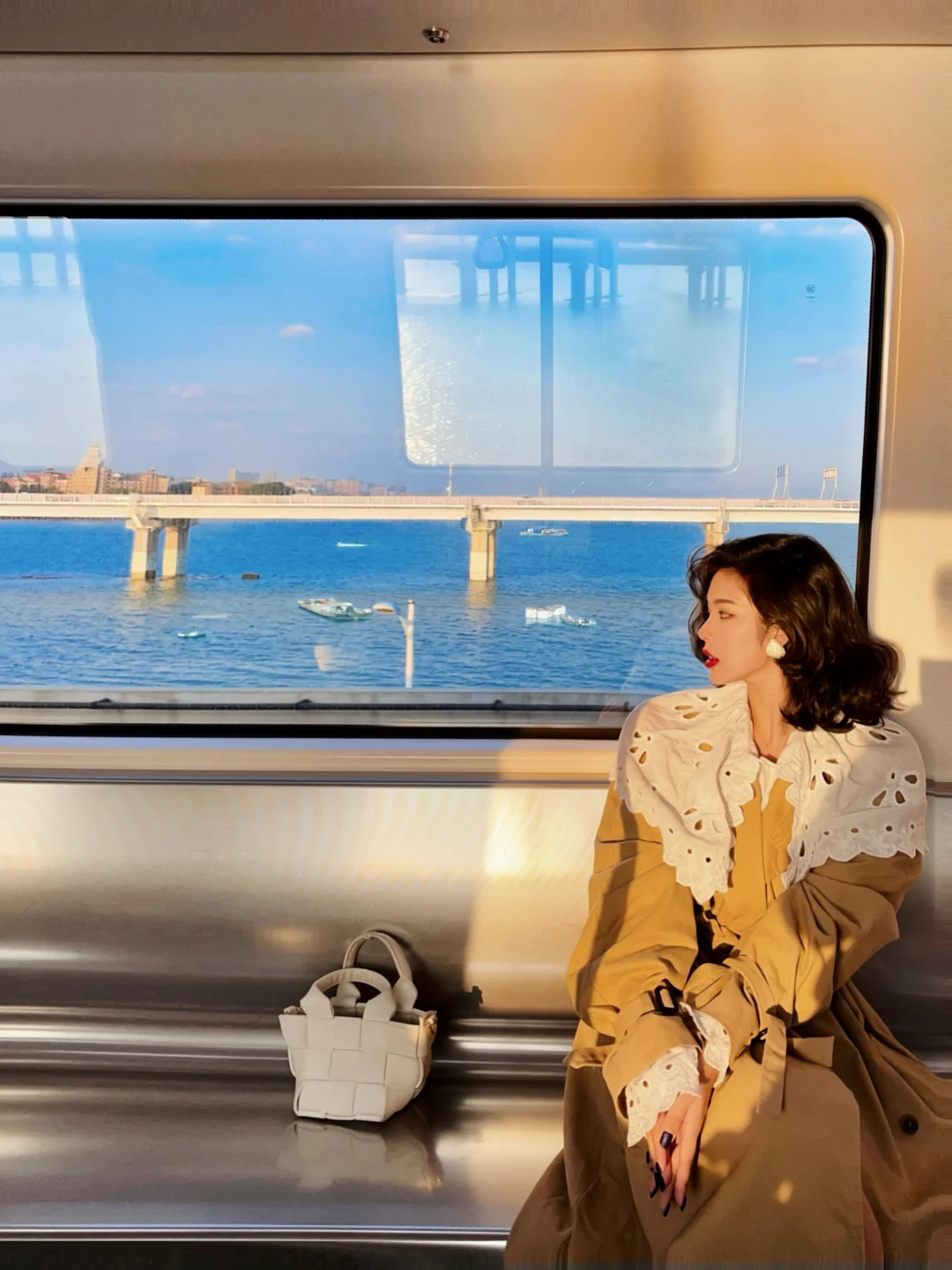 落日余晖时坐一次海上列车