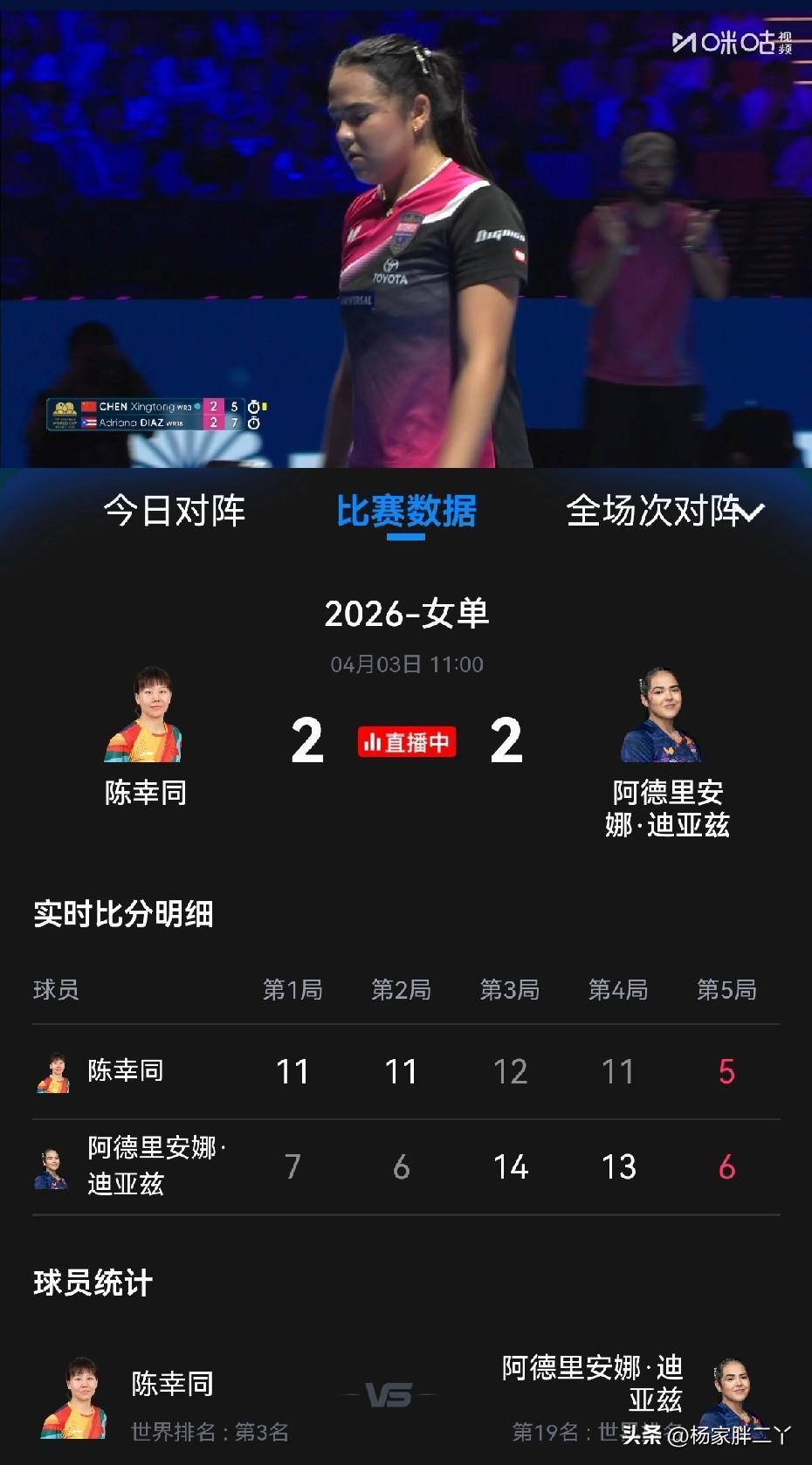 迪亚兹不愧是马琳口中的最强外协! 今天谁能想到迪亚兹能和陈幸同打到这个份上。 虽然陈幸同是4-2战胜了迪亚兹,看完这比分,6局有四局打爆分! 迪亚兹不愧是波多黎各的小钢炮,这单板质量,这么有劲,远台还很牛。 之前靠单板质量,现在增加了变化和节奏,难怪这么难打,谁和她打都脱一层皮的节奏。 陈幸同还好是4-2赢了,感觉再打一局,都不一定能赢下。