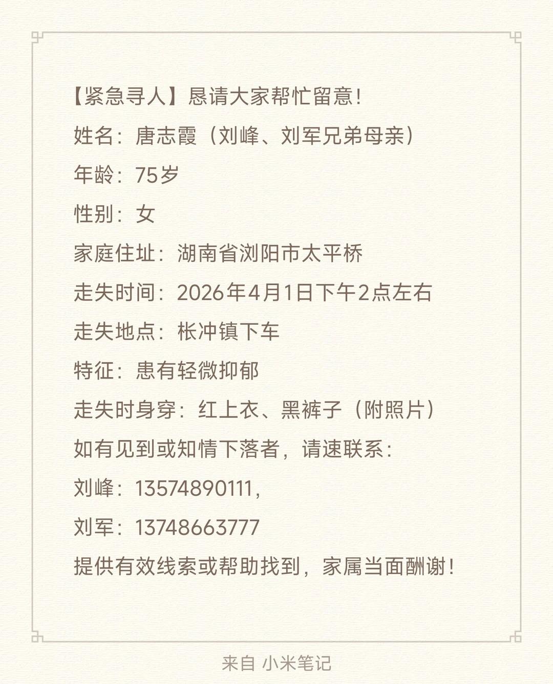 浏阳枨冲寻人启事