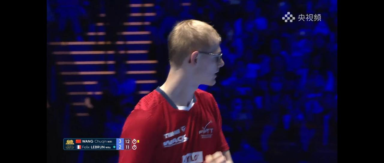 祝贺王楚钦单枪匹马孤军奋战坚定的挺进八强。 看起来轻松,但异常焦灼的一场比赛, 王楚钦坚定不移, 虽然一波三折, 险象环生, 但王楚钦的世界第一不是浪得虚名, 法国小将勒布伦实力不可小觑, 两个人也算棋逢对手打的难解难分, 小勒布伦以13:11侥幸险胜一局, 大头随之11:9扳回一局, 第三局勒布伦发挥的也相当出色马上又追回一局, 第四局,第五局大头打的相当出色, 决赛局第六局却打的出乎意料, 本来 10:8手握两个赛点, 却被小勒布伦10:10追平, 结果顿时很难预料, 两个人的比分交替上升, 直到15:13大头终于拿下, 挺进八强, 祝贺王楚钦。