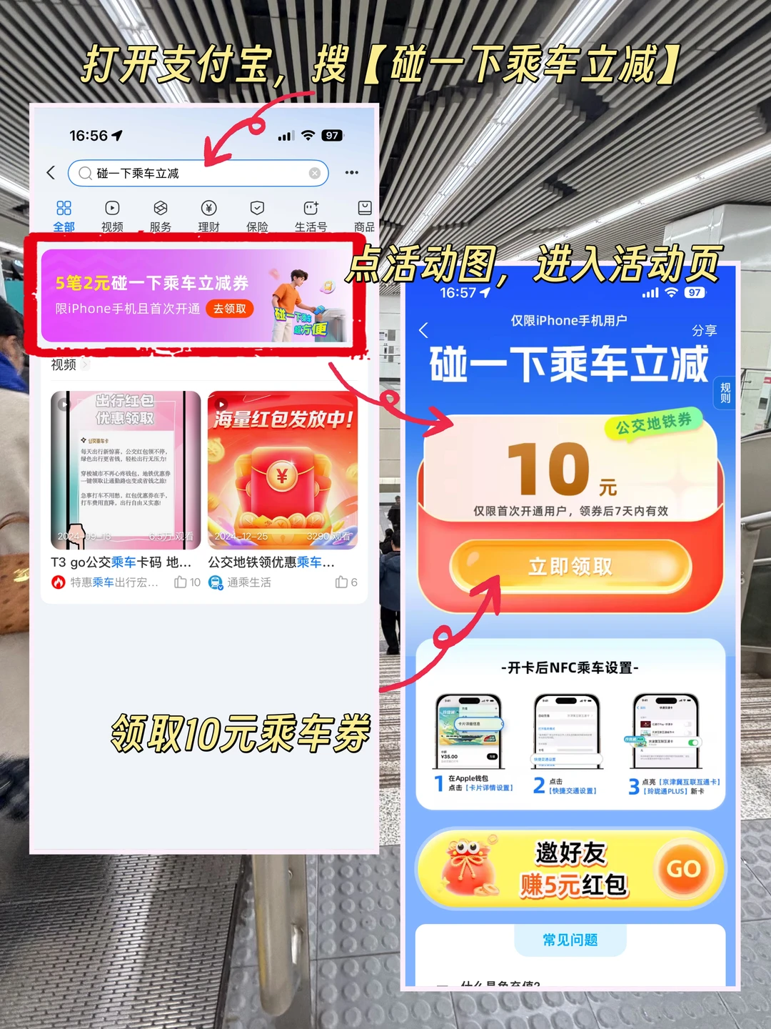 1️⃣打开支付宝,搜【碰一下乘车立减】👉点活动图,进入活动页