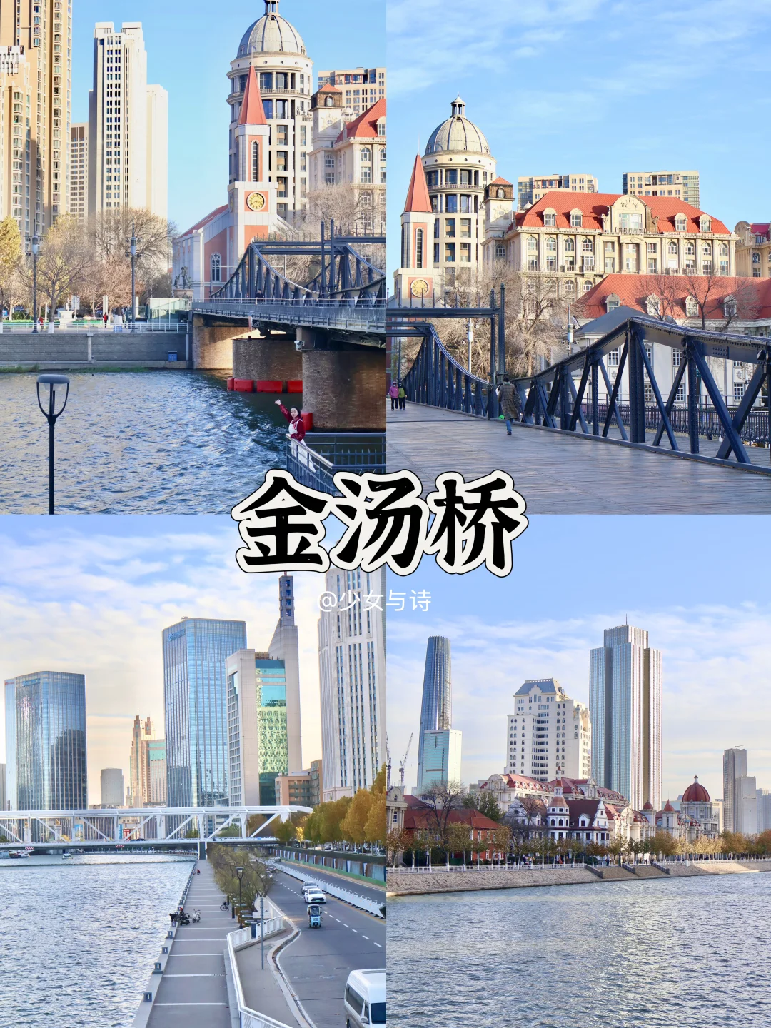 ✅ 天津地标桥,白天看工业风钢铁结构利落,还能拍到对岸钟楼与桥同框