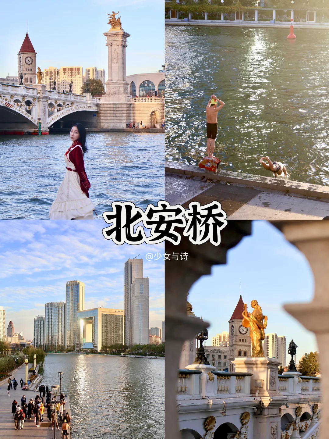 ✅ 融中式盘龙与欧式风格,夜晚灯光有氛围感,是海河必拍桥;常能看到大爷跳水‼️、跳舞,超有生活气。