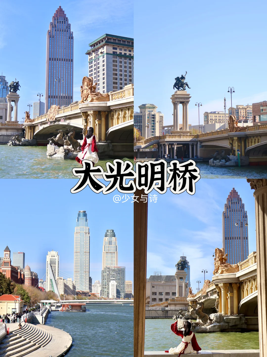 ✅海河颜值桥,有欧式雕塑和灯光,站桥远眺两岸城市景,适合拍照