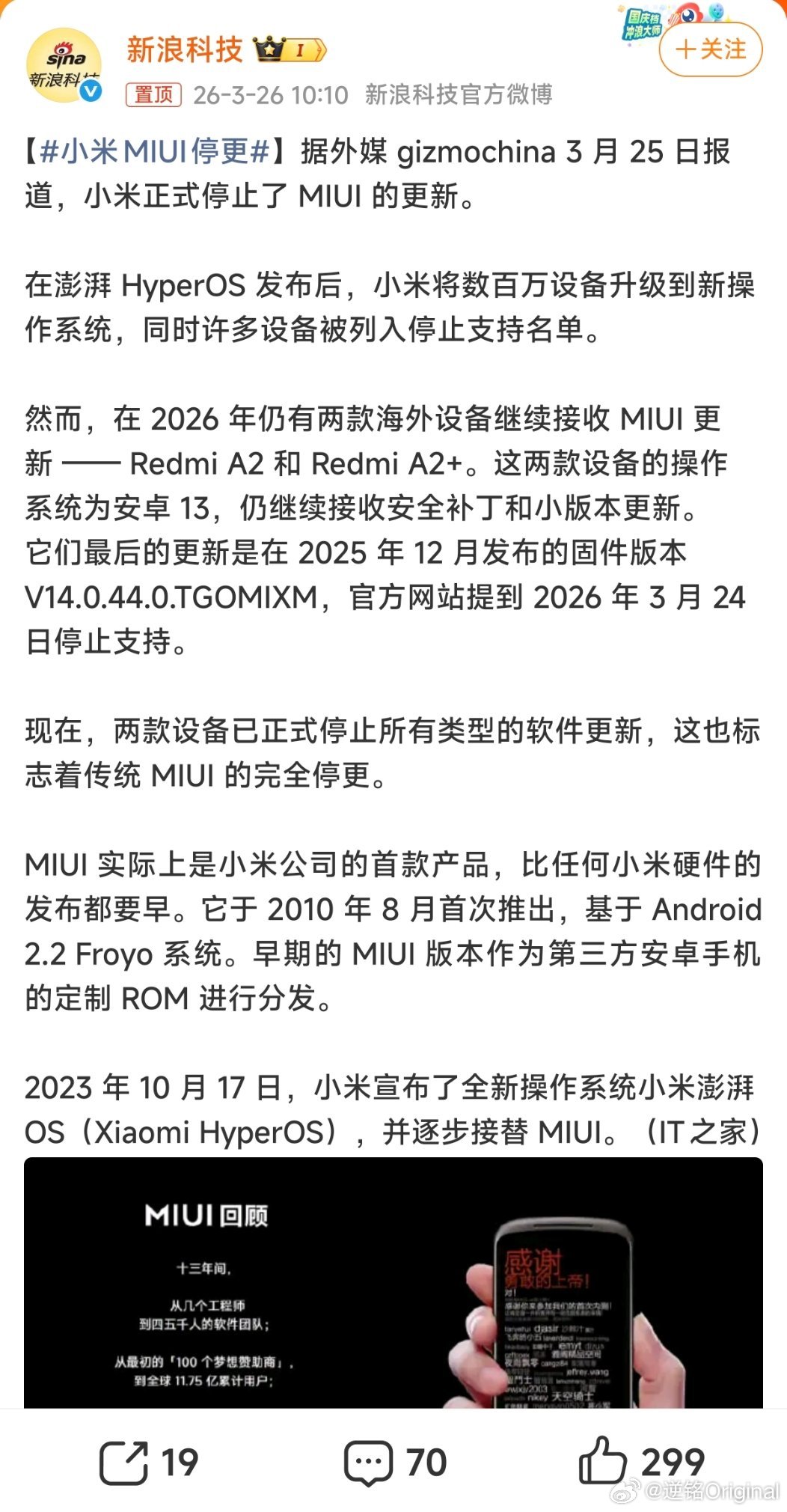 小米MIUI停更 三年前小米将澎湃OS作为新一代操作系统之后,MIUI就退出了历史的舞台,如今当系统维护期彻底过去,MIUI也迎来了停更的时刻。