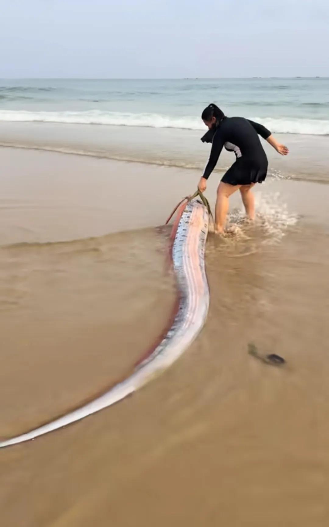 海南的陵水,出现一条皇带鱼,这种皇带鱼是深海才有的大鱼,一般能长到几十斤重。它的出现,是因为海南陵水这里,离深海很近,清水湾不远处就是深海。 这事可把在场的游客给吓了一跳。4月2号傍晚,有人正在清水湾沙滩上散步,突然看见海浪冲上来一个银白色的长条,跟条小船似的横在沙子上。走近一瞧,鱼鳃还在微微翕动,鱼身还能动弹,目测三米多长,几个人一起上阵想把它推回海里,结果根本拖不动。据说当时那名游客费了老大的劲,鱼才往前挪了那么一小截。最后这条深海大鱼因为已经濒临死亡,没法再救活了,大家也只能眼睁睁看着它搁浅在那里。 你可能会问,这皇带鱼到底是个什么来头,怎么会出现在这里?查了一下资料,皇带鱼是世界上体型最长的硬骨鱼,普遍能长到三米,体重最重的记录达到过五百多斤。它们平时生活在两百到五百米的深海,离海岸这么远,一般很难被人瞧见。这也就解释了为什么很多上了年纪的渔民看到它,脸色都会变一变。在日本,大家管它叫“龙宫使者”,觉得它是从龙宫里游出来的信使,一出现准没好事。尤其是在2011年那场九级大地震前,日本海岸线附近先后发现了大约二十条皇带鱼,这个巧合被反复提起,让它又多了一个外号叫“末日鱼”。 不过咱得说句公道话,把一条鱼当成地震预测器,这事儿本身就有点玄乎。日本有学者专门做过统计,把八十多年里发生的两百多次深海鱼出现事件,和同期的地震数据放在一起比对,结论是这两者之间压根没有统计学上的关联。海洋学家也说,皇带鱼上浮搁浅的原因多了去了——寄生虫感染、水下噪音污染、海水水温变化、洋流变动,甚至台风过境都有可能把它们推上浅滩。这次搁浅的位置偏偏在清水湾,那里的海岸线往外走两百米,水深都不过两米,游客能在那儿碰到一条从五百米深海游上来的巨物,与其说是末日征兆,不如说是个极其罕见的小概率事件。 可事情一旦跟传说挂上钩,想掰扯清楚就难了。现场视频传到网上,有人开始担心是不是要发生地震了,甚至有人拿这条鱼跟今年三月墨西哥海滩同时出现两条皇带鱼的事联系起来。说到底,这种担忧还是源自人类对大自然那份根深蒂固的敬畏——未知的东西总是让人心里没底,一条来自深海的长得像海怪的鱼突然出现在脚边,任谁都会觉得冥冥之中在暗示着什么。但冷静下来想一想,这更像是在提醒我们一件事:我们对深海的了解,可能还赶不上对月球的认知。连一条鱼为什么会突然游上来都找不到确切答案,更别提那些藏在万米海沟底下的秘密了。 各位读者你们怎么看?欢迎在评论区讨论。