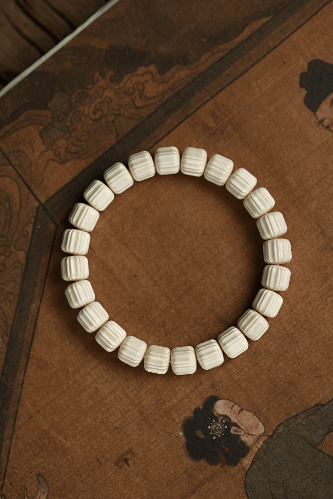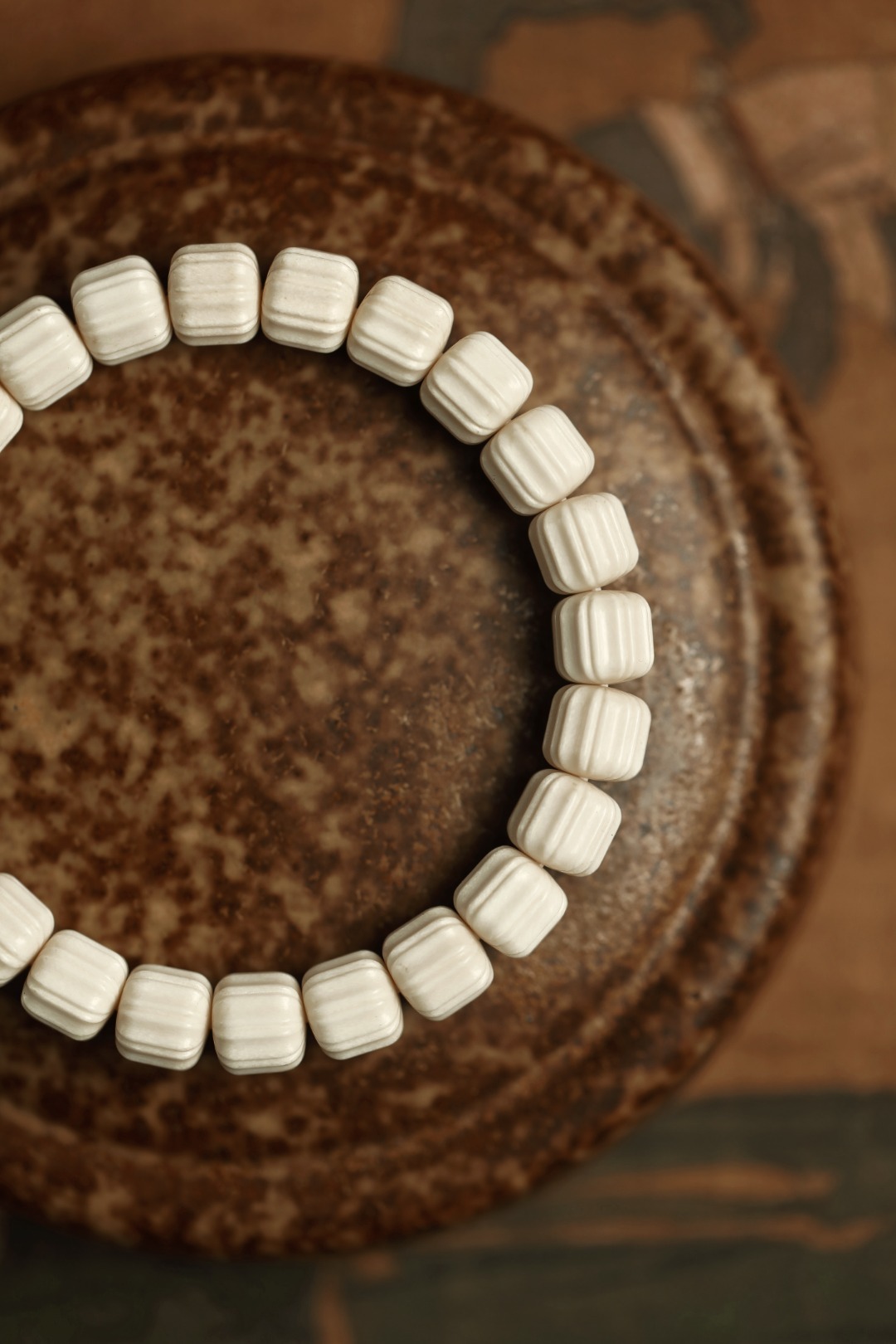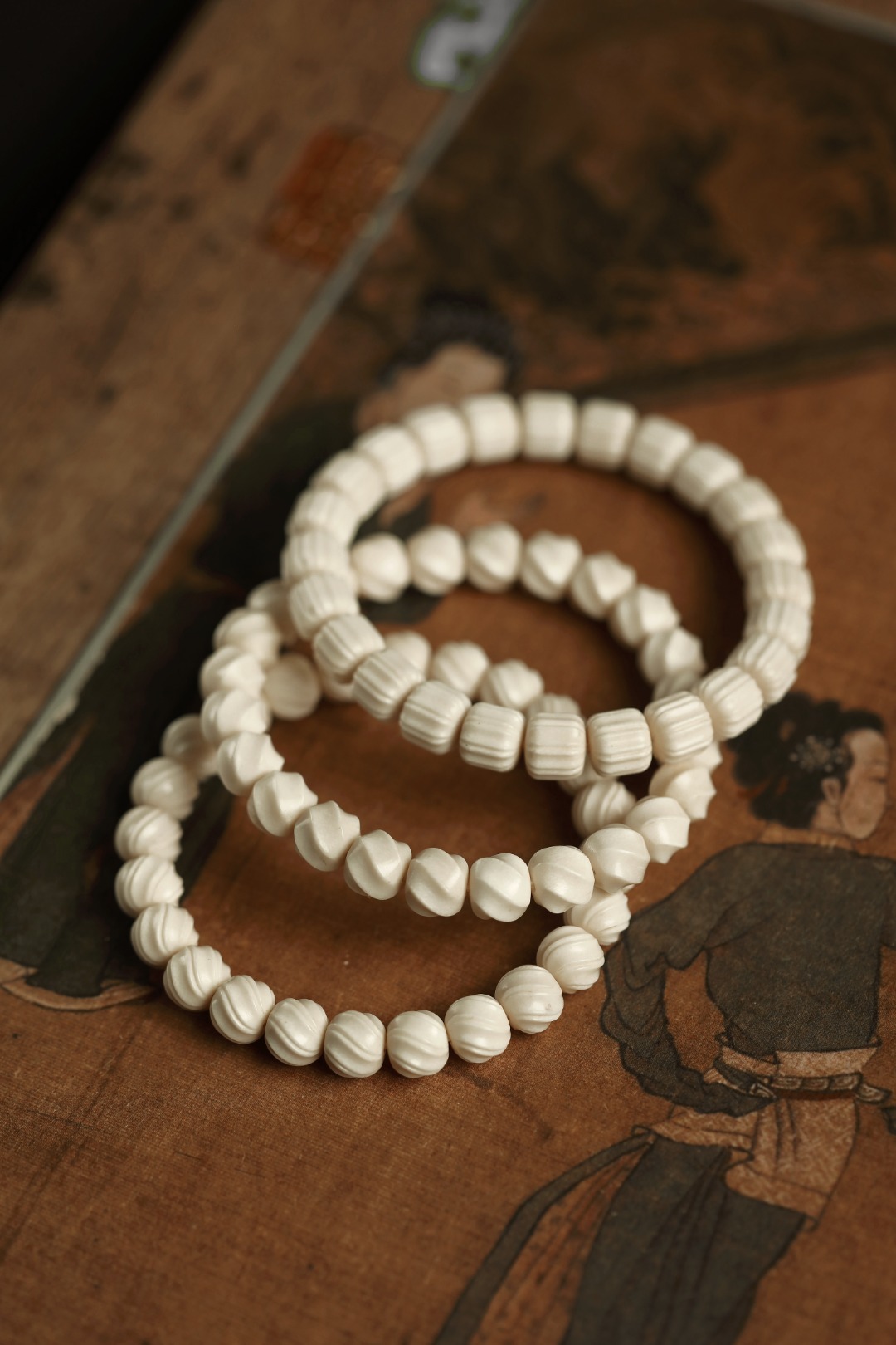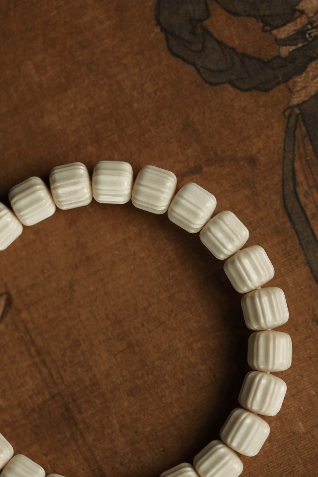 洁白如玉,独特亦耐看,尽显温柔沉静,环绕皓腕,一抹恰如其分的风情,手持的瞬间,灵动唯美。 鹿角 | 八棱珠 · 手串 8mm24颗