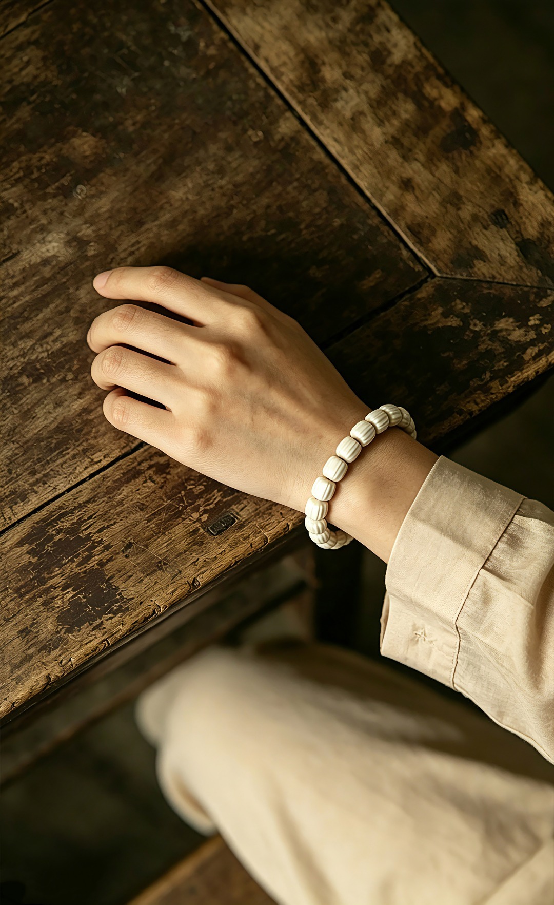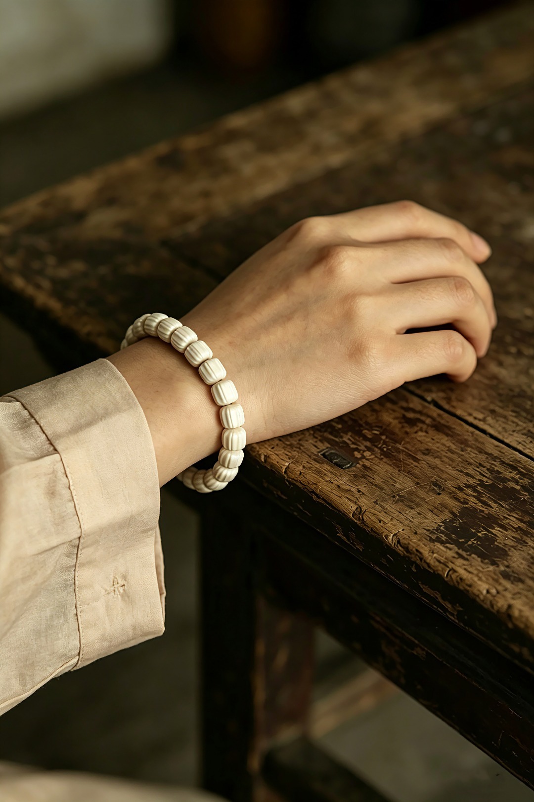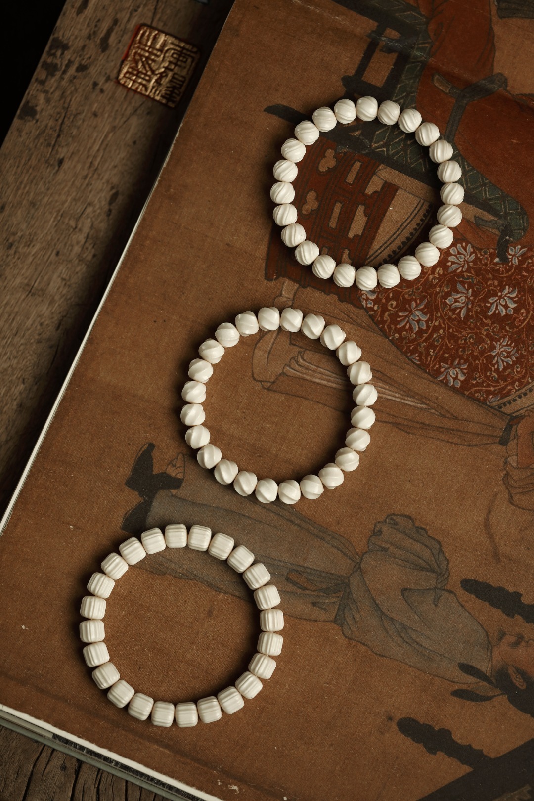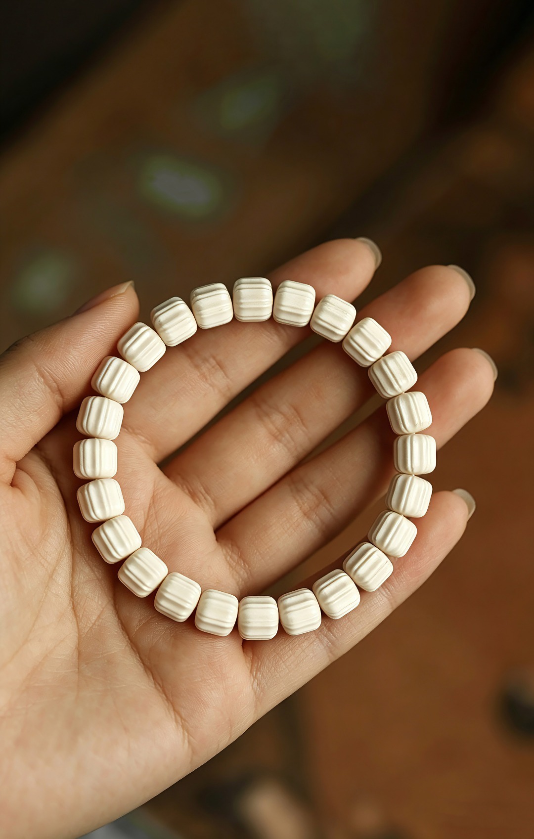 洁白如玉,独特亦耐看,尽显温柔沉静,环绕皓腕,一抹恰如其分的风情,手持的瞬间,灵动唯美。 鹿角 | 八棱珠 · 手串 8mm24颗