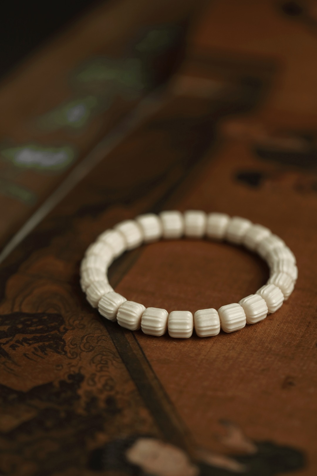 鹿角 | 八棱珠 · 手串 8mm24颗洁白如玉,独特亦耐看,尽显温柔沉静,环绕