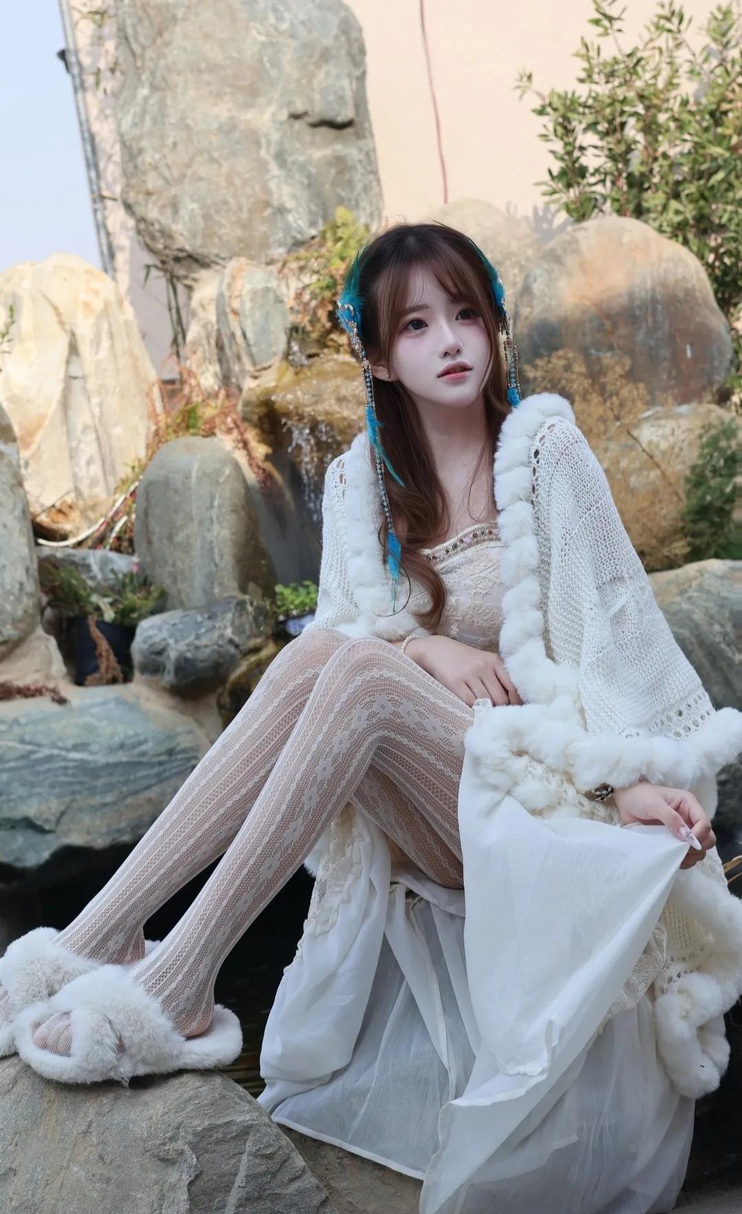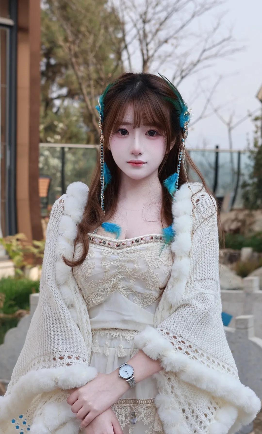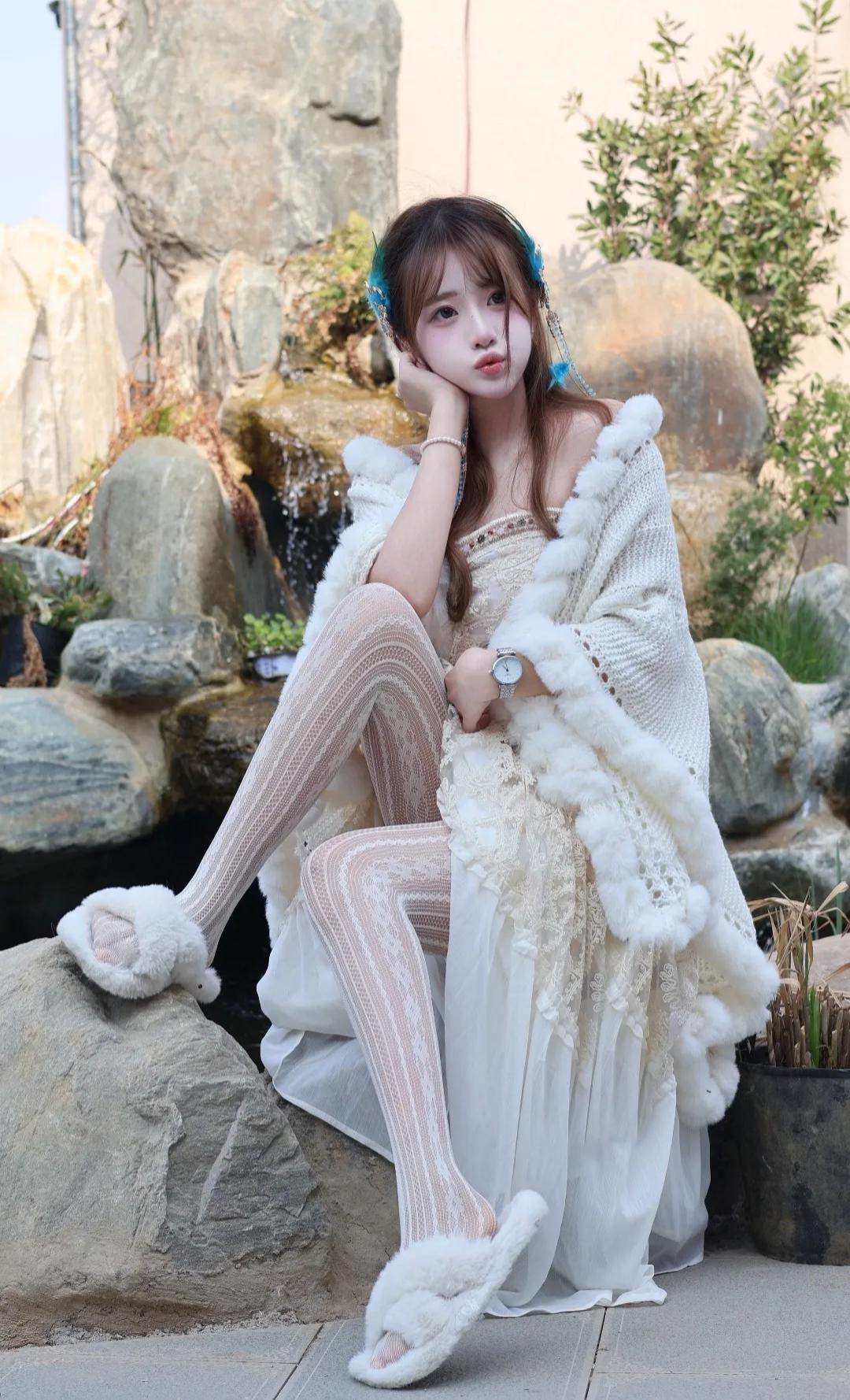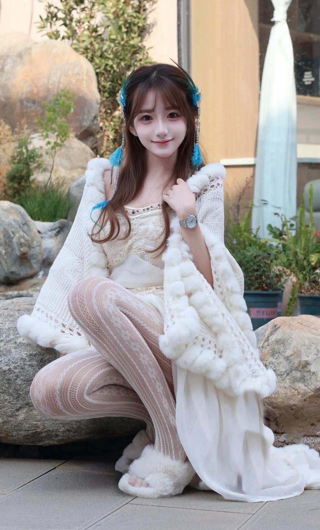 快看啊!这套地域风穿搭直接美到心巴上 谁能拒绝温柔又灵动的地域少女感穿搭!奶白色毛绒披肩+蕾丝吊带长裙,温柔感直接拉满,毛绒边软糯又显贵,蕾丝花纹精致又浪漫,搭配同色系菱格白丝,纯欲感瞬间拿捏。 蓝羽流苏发饰是点睛之笔,灵动又仙气,瞬间把氛围感拉满,仿佛从雪山草原走来的精灵。毛绒拖鞋慵懒又松弛,日常出街、拍照打卡都超合适,温柔中带着一丝野性,甜酷感平衡得刚刚好。 阳光洒在身上,连风都变得温柔,每一帧都像电影截图,这才是属于东方女孩的浪漫氛围感!