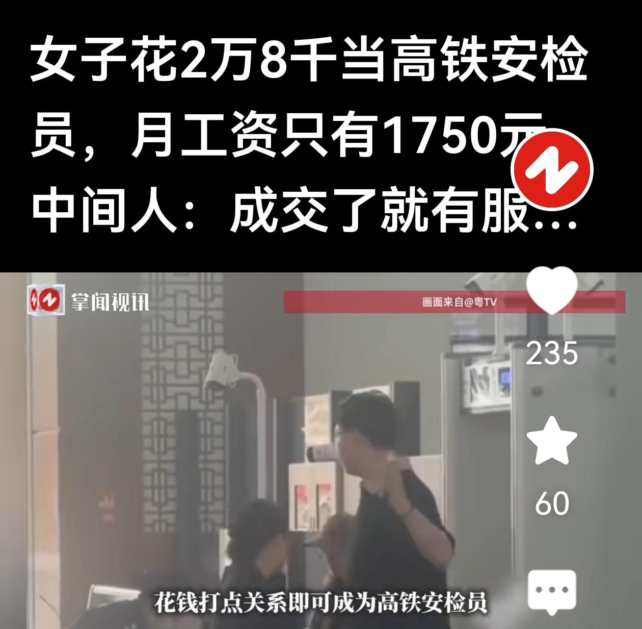 河南,女子花28000元买了一个“高铁安检员”内部名额,上岗后才知:月薪仅1750元,每天站16小时,不吃不喝要16个月才回本。中介说,成交了就有服务费,坚决不退钱。报警不立案。 河南一名女子拿着报警回执,站在高铁站门口满心绝望。她花28000元托中介买了高铁安检员的“内部名额”,本以为能拥有稳定体面的工作,可上岗后才发现,现实远比想象中残酷,连想要回本金都难如登天。 女子此前一直想找一份稳定工作,偶然间听说中介手里有高铁安检员的内部名额,不用考试、不用排队,只要交28000元服务费就能直接上岗。中介把岗位吹得天花乱坠,说工作轻松、薪资可观,几个月就能回本。 心动之下,女子没有过多犹豫,凑齐了28000元交给中介,双方没有签订正规合同,只拿到了一张简单的收款收据。她满心期待着上岗,幻想着穿上制服、体面工作的样子,丝毫没察觉这是一场精心设计的陷阱。 很快,中介通知女子去参加岗前培训,可培训格外敷衍,没有系统的教学,只简单讲解了几句安检流程就结束了,和正规高铁安检培训的规范流程相差甚远,这让女子心里第一次泛起了嘀咕。 正式上岗第一天,女子就彻底懵了。她被安排在高铁站入口处站岗,从早上6点一直站到晚上10点,整整16个小时,中间只有40分钟的吃饭时间,连喝水、上厕所都要抓紧时间,一天下来腰腿酸痛难忍。 更让她崩溃的是,第一个月工资到账时,手机短信显示只有1750元。她掐着手指头算了一笔账,按照这个薪资,不吃不喝不花一分钱,整整需要16个月,才能挣回当初交的28000元服务费。 巨大的落差让女子难以接受,她第一时间找到中介,要求退还28000元服务费。可中介态度强硬,直言交易已经完成,服务费不能退还,还说当初早已说清,是女子自己自愿交钱,与他们无关。 女子不甘心,带着收款收据和相关证据去派出所报警,希望能通过法律途径追回自己的钱。可民警调查后表示,此事属于民事纠纷,不符合立案条件,无法立案,只能建议她通过民事诉讼解决。 女子这下彻底慌了,她没想到自己花了血汗钱,不仅没找到体面工作,还落得这般下场。她每天依旧要顶着疲惫,每天站16小时岗,拿着1750元的月薪,看着遥遥无期的回本时间,满心懊悔。 后来她才知道,中介就是抓住了普通人想找稳定体面工作的心理,把普通的劳务派遣岗位包装成“内部名额”,靠收取高额服务费牟利,而这种私下交易没有正规合同,维权起来难度极大。 对此,你们有什么看法,欢迎评论留言~