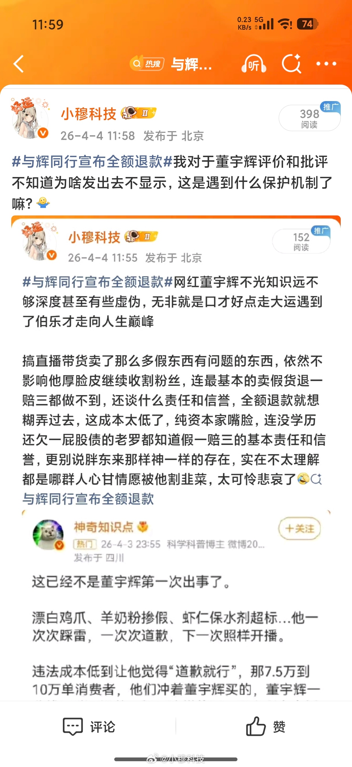 与辉同行宣布全额退款不能正常评价董宇辉???