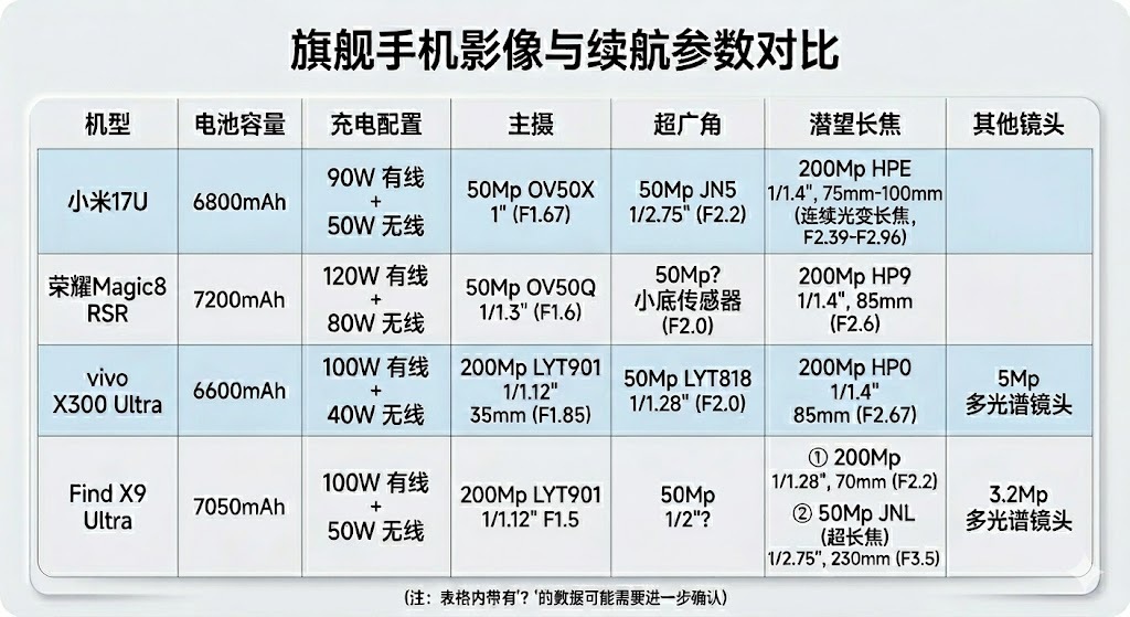 这一代超大杯旗舰的电池和影像方案: