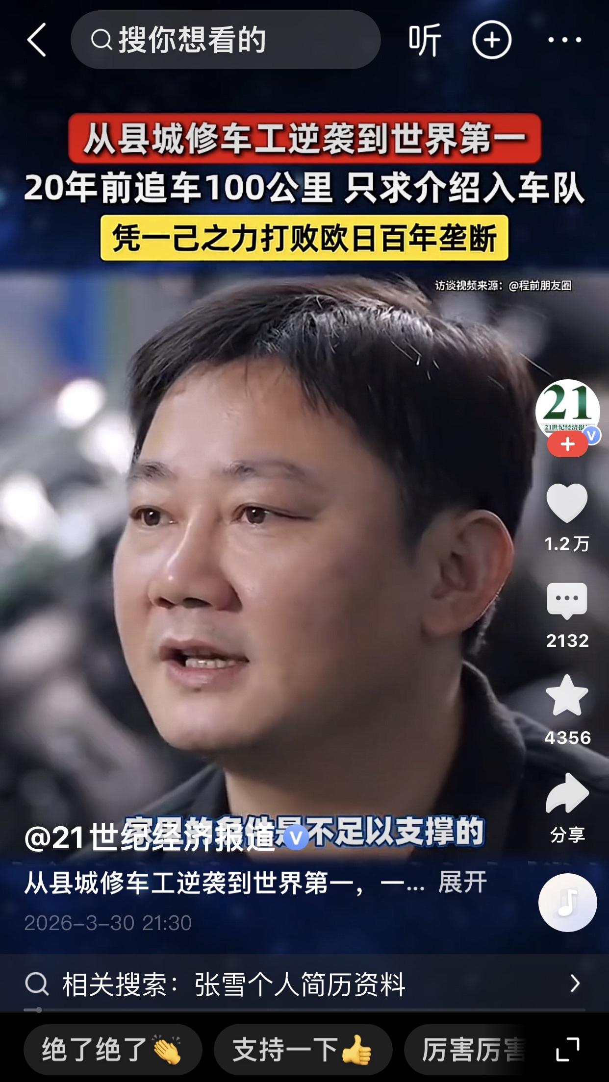 张雪夺冠为什么只认一个记者, 因为这是现实版的“知遇之恩”,比任何剧本都动人。 20年后,张雪成了世界冠军,那么多媒体找他,他谁都不见,就认当年那个记者易军。 俩人一见面,抱着就哭,谁能想到,20年前那个狼狈的雨夜,竟成了一辈子的缘分。 时间拉回2006年,那时候的张雪还只是湖南怀化一个普通的摩托车修理工,刚满19岁。 他从小就痴迷摩托车,心里藏着一个赛车梦,可他没背景没资源,连进专业车队的门槛都摸不到。 为了能让自己的车技被人看见,他连续一周给湖南卫视《晚间新闻》栏目打热线,一遍遍恳求记者来采访他。 当时负责这个线索的,就是记者易军。 易军一开始并没太在意,毕竟每天找栏目的人很多,他只是抱着完成选题的心态,赶往怀化找张雪。 可见到张雪的那一刻,他才发现这个少年,对赛车的执念远超他的想象。 那时候怀化的山路不好走,又恰逢下雨天,气温只有10度左右。 张雪穿着单薄的衣服,骑着一辆破旧的摩托车,一路追着易军的采访车,整整追了100多公里。 途中他好几次摔倒在泥坑里,膝盖都摔破了,简单擦了点药,就立刻爬起来继续追,一刻都不肯停下。 追了三个多小时,张雪浑身湿透,嘴唇冻得发紫,整个人狼狈不堪。 他拦住采访车,对着易军说,自己不想一辈子修摩托车,想进车队比赛,想造属于自己的摩托车。 他说上电视不重要,只要能被专业车队看到,他就有圆梦的机会。 易军被这份执着打动了,他没有摆拍,也没有刻意修饰,就用镜头真实记录下张雪的模样。 这段视频播出后,很快被江苏的一支车队看到,车队看中了张雪的韧劲,给了他进入车队的机会。 这也是张雪赛车梦,真正开始起步的第一步。 在那之后,易军一直默默关注着张雪。 他花了八万块钱,买了九十块硬盘,把当年拍摄张雪的所有素材都备份保存好,一存就是二十年。 他没想着靠这段素材博眼球,只是单纯想守护这个少年的初心,看着他一步步朝着梦想走。 而张雪也从来没忘记这份恩情,他进入车队后,拼了命地训练和学习。 他从最基础的车手做起,慢慢积累经验,后来又下定决心,要打造属于中国自己的摩托车品牌,打破国外品牌的垄断。 这一路走得格外艰难,他遇到过资金短缺、技术瓶颈,也遭受过不少质疑,但他从来没放弃。 2026年3月,世界超级摩托车锦标赛葡萄牙站的比赛上,张雪带领自己的车队拿下双冠。 这是中国摩托车品牌,首次在这项世界级赛事中夺冠,消息一出,无数媒体蜂拥而至,都想采访张雪。 可张雪全都拒绝了,他只提出要见一个人,就是当年帮他的记者易军。 两人见面的那一刻,没有多余的客套,直接抱着哭了出来。 张雪哭的是,二十年的坚持终于有了结果,当年那个雨夜的少年,真的活成了自己想要的样子。 易军哭的是,他亲眼看着一个草根少年,凭着一股韧劲,完成了看似不可能的逆袭。 这些年,张雪见过太多功利性的交往,也看透了流量和名气的虚无。 在他心里,易军不是普通的记者,而是在他最黑暗、最无助的时候,愿意给他一束光的人。 这份不掺杂任何利益的知遇之恩,比任何荣誉都珍贵,他记了整整二十年。 易军也曾说,张雪的贵人从来不是自己,而是他自己的坚持和努力。 可对张雪而言,没有易军当年的那个镜头,他或许根本没有机会,踏上后来的追梦路。 这份双向的奔赴和铭记,才让这段缘分,显得格外动人。 各位读者你们怎么看?欢迎在评论区讨论。