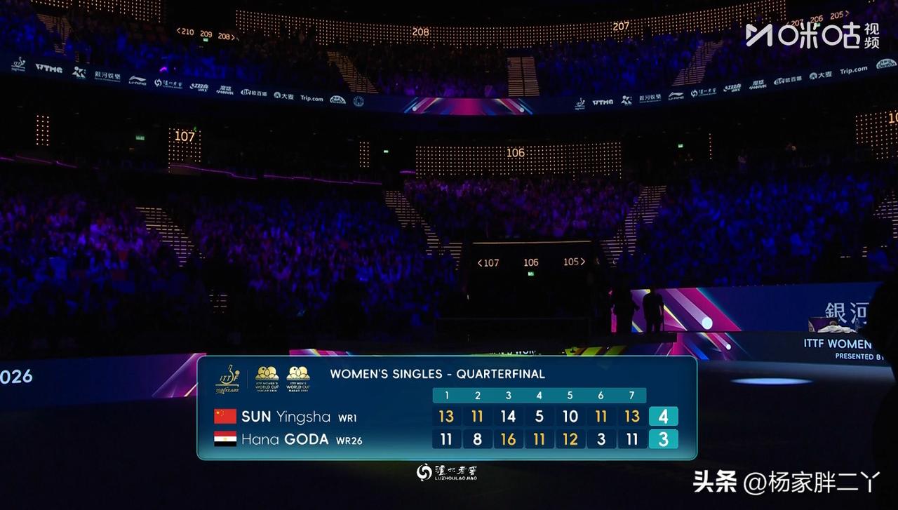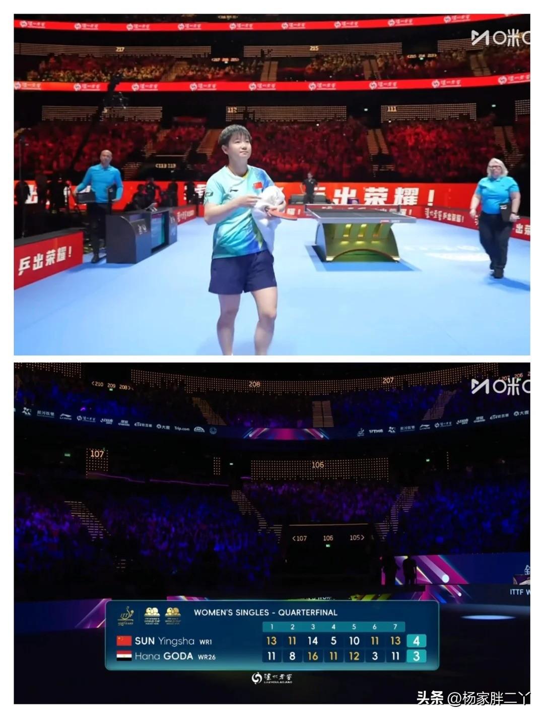 我天!第一次看莎莎的比赛这么紧张!心率直奔180的节奏! 今天这七局大战,4局打出了爆分,汉娜.高达从没这么爆种过吧! 决胜局还天崩开局1-5落后,莎莎稳步追平,比分交替上升,高达甚至把莎莎逼到了8-10的绝境,先拿到赛点。 莎莎是谁呀,不仅是追分的神,还有超高的决胜局胜率,最后2分还是用自己最拿手的正手拿下比赛! 这次四强之争,再一次感叹莎莎真牛逼skr! 高达也是超神发挥,离胜利最最最接近的一次,最后还是没拿下,直接道心破碎,崩溃痛哭。 17岁的高达可以说创造非洲女单的历史了,未来也是不可忽视的劲敌,我们的小将感受到了吗? 澳门世界杯2026 女单1/4决赛 孙颖莎(CHN) 4-3 汉娜·高达(EGY)【13-11,11-8,14-16,5-11,10-12,11-3,13-11】 自此,孙颖莎和汉娜.高达三战三胜!恭喜莎莎晋级女单四强! 下一场半决赛,和沙宾.温特又是一场遭遇战,关关难过,关关过,莎莎加油![奋斗][奋斗][奋斗]