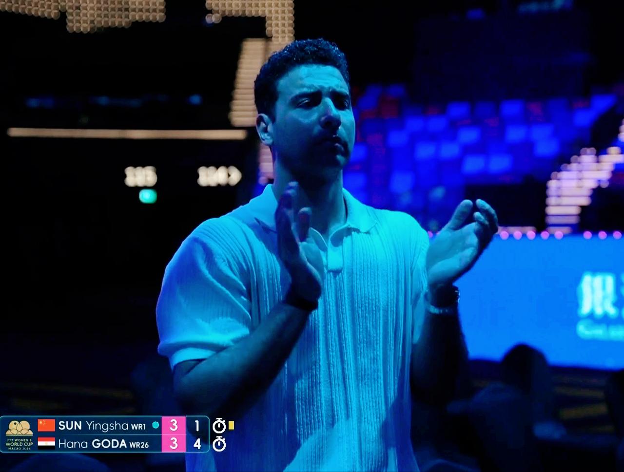 终于明白汉娜高达为何对孙颖莎的战术了如指掌? 原来前几天, 咱们教练席多了一个人。 这个人就是埃及男队的阿萨尔, 每次国乒教练组看球的时候, 他就跑到国乒边上坐着。 已经好几次了, 我已经盯上他了。 我估计他去偷听去了。 咱们教练组看球, 肯定要讨论一下, 这哥们跑过去偷听。 今天莎莎和高达的比赛, 她就跑到高达那里加油去了, 估计赛前也给高达指导了。