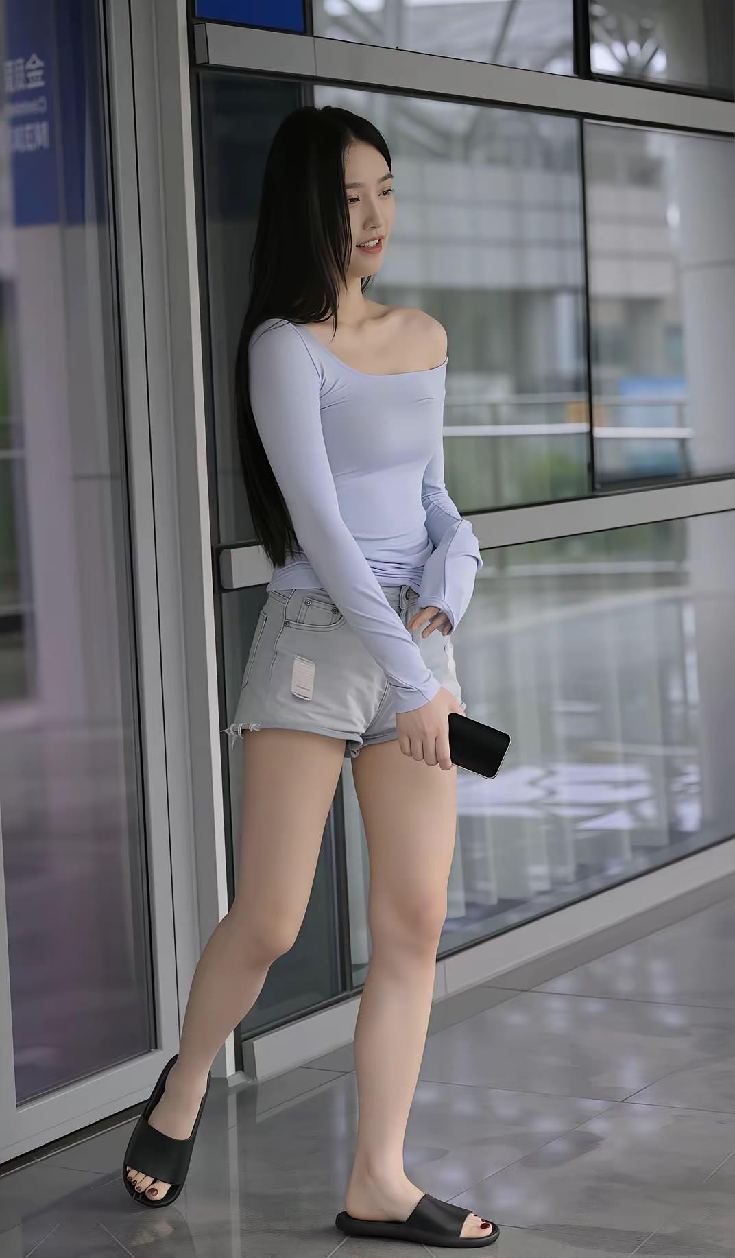 什么样的穿搭可以成为气质女神? 清新少女风,浅蓝色上衣搭配牛仔短裤,简约自然,夏日清新感十足!🌞💙👗
