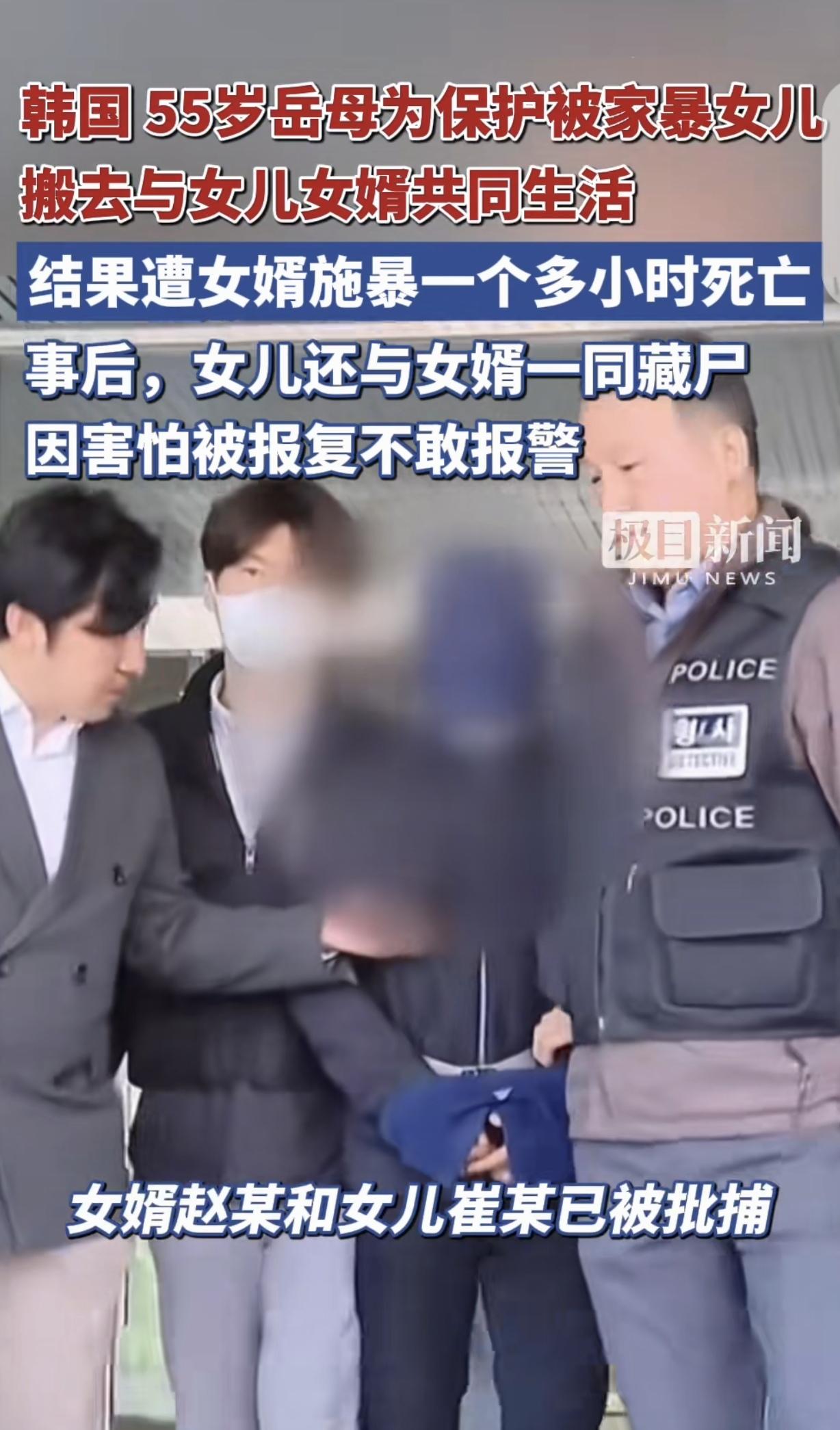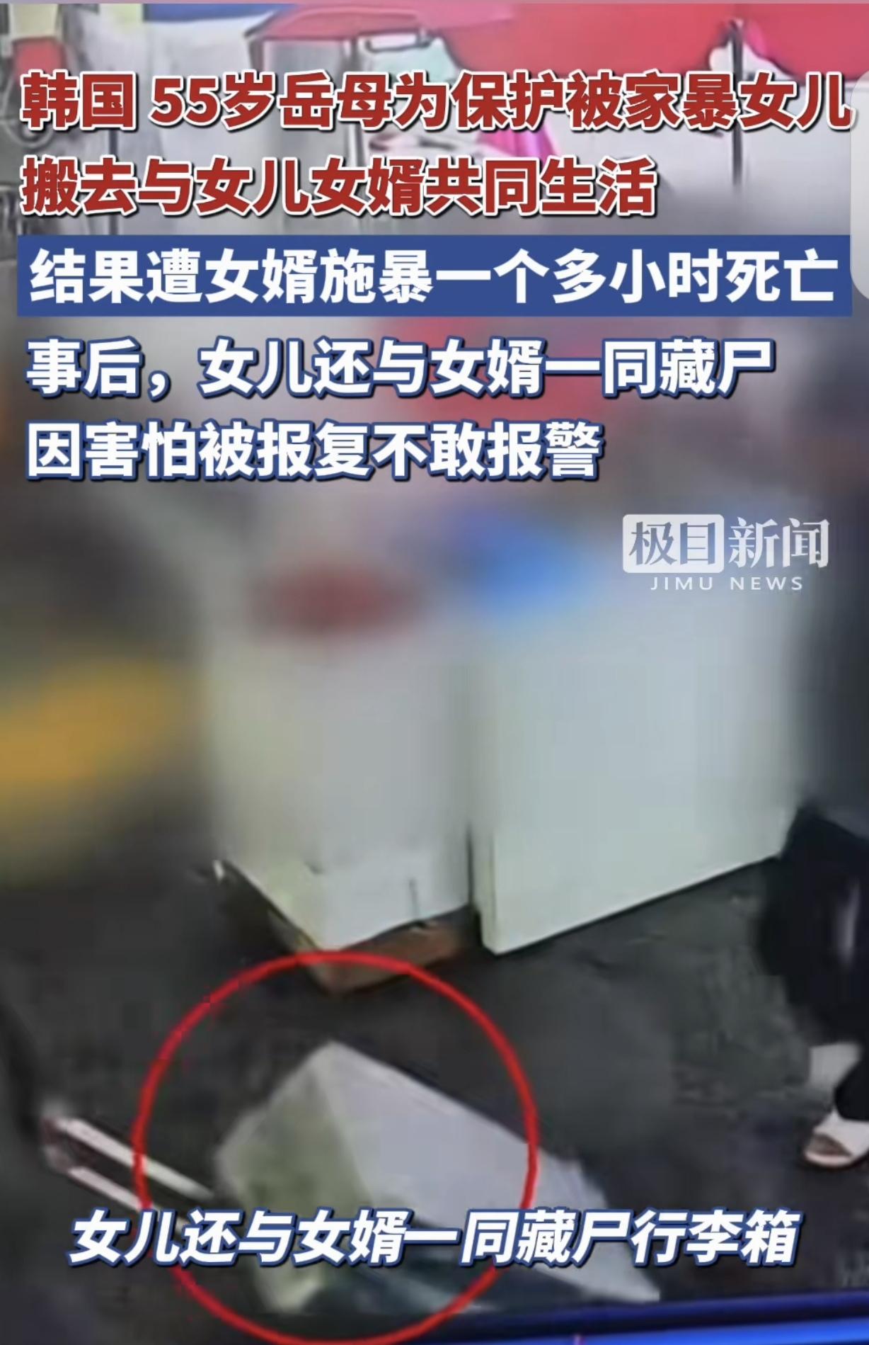 “这女儿白养了!”一55岁女子,为给被女婿打的女儿撑腰,搬进女儿家住,万万没想到,女婿没惯着岳母,揍了她1小时,直接把岳母打死了,不可思议的是,女儿竟然伙同丈夫,把母亲藏在拉杆箱里,直接扔在河边。怕报复不敢报警。 韩国,55岁的金女士怎么也没想到,自己为了帮女儿出头,最后竟把命丢在了女婿手里。 金女士的女儿崔某结婚3年,总跟母亲哭诉被丈夫赵某打骂。 金女士心疼女儿,2026年年初干脆收拾行李搬进了女儿家,想给女婿点颜色看看,也能随时护着女儿。 可她刚住进去没半个月,就和女婿彻底闹僵了。赵某嫌金女士在家制造噪音,东西到处乱放,两人天天拌嘴。 那天下午,不知又因为什么小事,2人起了争执,赵某彻底爆发,对着金女士一顿拳打脚踢。 他把金女士按在客厅地板上,扇耳光、用拳头砸,用拖布打,足足打了1个小时,崔某在一旁哭泣,为母亲求情,可赵某不为所动。直到金女士没了动静才停手。 崔某看着母亲的尸体,不敢报警,怕丈夫报复,又怕事情闹大毁了自己的生活。 赵某提出把尸体藏起来,崔某竟然同意了。两人翻出家里最大的拉杆箱,费劲地把金女士的尸体塞进去,又在上面盖了几层旧衣服。 趁着天黑,赵某开车带着崔某和拉杆箱,跑到几十公里外的岸边。 他们找了个偏僻的河湾,把拉杆箱随手扔在河里,就匆匆回了家。 接下来,-赵某严密控制崔某,不让她报警、不允许接电话、不准外出,全程监视。 两人像没事人一样正常生活,崔某甚至还跟亲戚说母亲回了乡下老家。 可纸终究包不住火。一周后,一个钓鱼的老人发现了拉杆箱,好奇打开一看,吓得当场报警。 警方很快通过尸体上的衣物和DNA比对,找到了崔某和赵某。 面对审讯,两人没挣扎多久就全招了,赵某承认自己失手打死了岳母,崔某也坦白了帮着藏尸的事。 消息传到崔家老家,金女士的老伴当场晕倒,亲戚们更是骂崔某白眼狼,说她母亲白疼了她一场。 赵某在法庭上辩解,说自己是因为被岳母长期骚扰才动手,可监控录像和尸检报告显示,金女士身上有多处骨折和内伤,明显是被持续殴打致死。 目前,赵某因涉嫌故意伤害致人死亡被起诉,崔某则涉嫌包庇罪一同被提起公诉。 这桩悲剧不仅毁了一个家庭,也让所有人唏嘘:本该最亲近的母女、夫妻,最后却变成了凶手和帮凶,实在太荒诞。 根据韩国《刑法》第257条,故意伤害致人死亡罪,故意伤害他人身体致其死亡的,处5年以上有期徒刑、无期徒刑或死刑;第152条包庇罪,明知他人犯罪而帮助其藏匿尸体、毁灭证据的,处3年以下有期徒刑。 赵某持续殴打金女士1小时致其死亡,并非“失手”,而是主观上具有伤害故意,客观上造成死亡结果,符合故意伤害致人死亡罪的构成要件,应依法从重处罚。 崔某明知丈夫杀人,仍协助藏匿尸体、编造谎言,构成包庇罪。 她“怕报复”的理由不具备免责性,需承担相应法律责任。 对此,你怎么看?