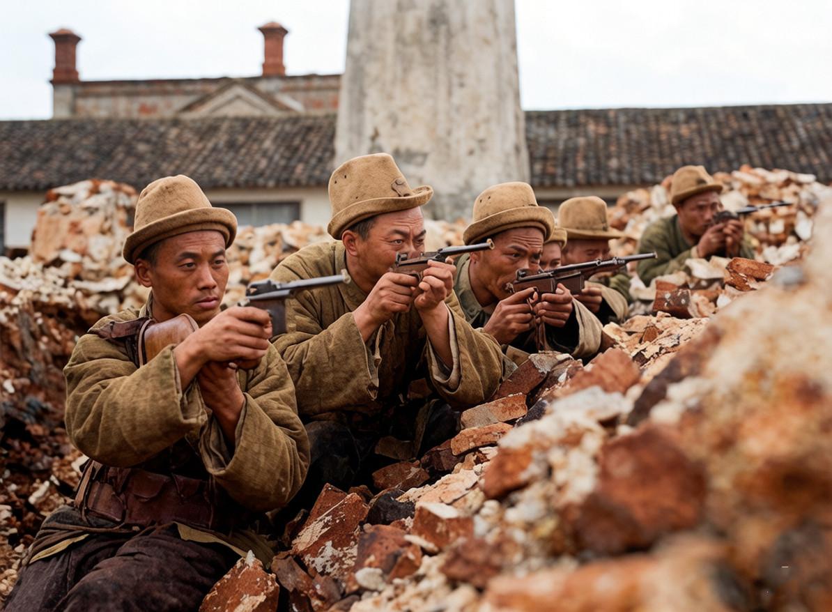 北洋时期,孙传芳麾下的“五省联军”士兵正趴在建筑的废墟中射击,人手一把毛瑟 C9
