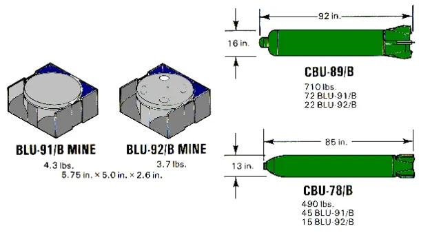 美国军方最新公布的照片显示,F-16C战斗机对伊朗进行的打击任务中,携带了CBU-89/B集束炸弹(红圈内)。这种集束炸弹也被称为SUU-64战术弹药布撒器,配用FZU-39近炸引信。内部72枚BLU-91/B反坦克地雷和22枚BLU-92/B反步兵地雷。 BLU-91/B反坦克地雷的外形为长方形盒子,尺寸143毫米乘127毫米乘69毫米,中间是直径120毫米的圆柱形雷体,整体橄榄绿色,全重1.91千克。其主炸药为590克黑索金(RDX),可穿透61毫米均质钢装甲。 BLU-92/B反步兵地雷外观与BLU-91/B反坦克地雷相似,最大区别在于其圆柱部分顶板和底板有四组椭圆形端口,内部装八组绊线组件,每组绊线长12米,完全展开后形成17米×17米的绊线区域。该雷主炸药为400克B4炸药,外覆带刻槽钢制破片套筒。 美军战机主要是在伊朗导弹基地周边、可能行驶的道路出入口、转移路线周围投掷CBU-89/B,撒布BLU-91/B反坦克地雷和BLU-92/B反步兵地雷,限制伊朗导弹发射车的机动并进行杀伤破坏。 数天前,伊朗设拉子市附近就发现了这两类地雷,但未见毁伤伊朗导弹发射车,却造成了众多平民伤亡。