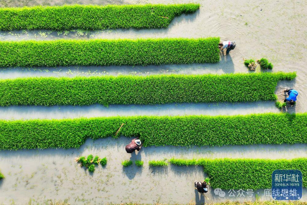 村民们在扯水稻秧苗 资料图:新华社