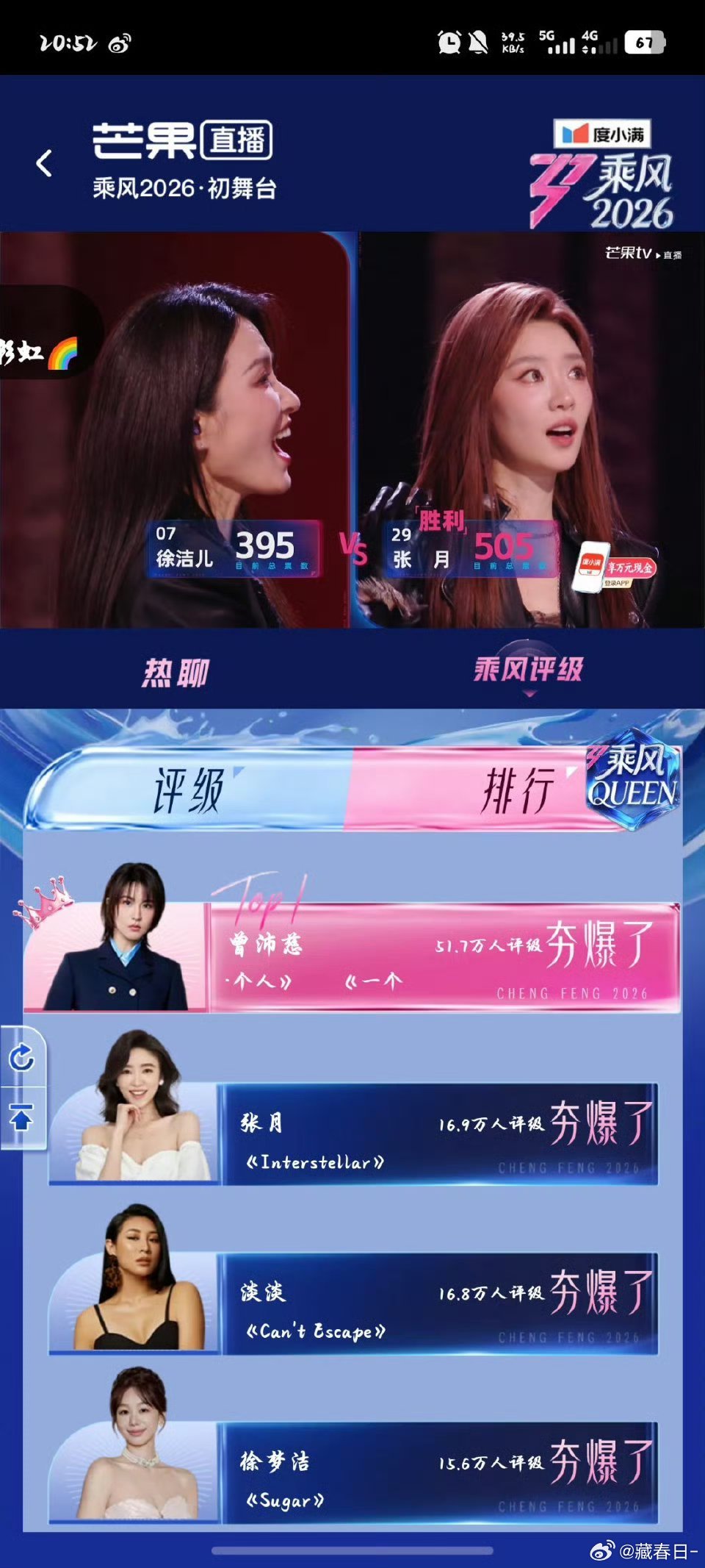 张月太牛了目前全场最高票 激动哭了 但是徐洁儿表现也很好哎