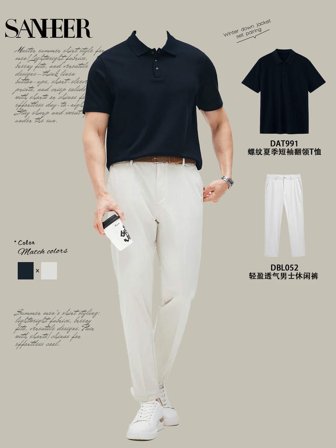 ▫️休闲党:纯色 Polo + 牛仔,清爽透气,约会出街都可▫️轻商务:Polo + 直筒休闲裤,沉稳不刻板