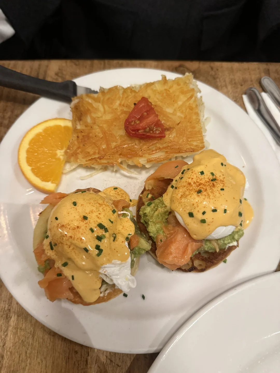 [种草R]【烟熏三文鱼牛油果班尼蛋】一口下咽完全不想再吃第二口了,有股橡胶的气味,不知道是烟熏三文鱼的特殊气味,还是什么调料,总之放弃了