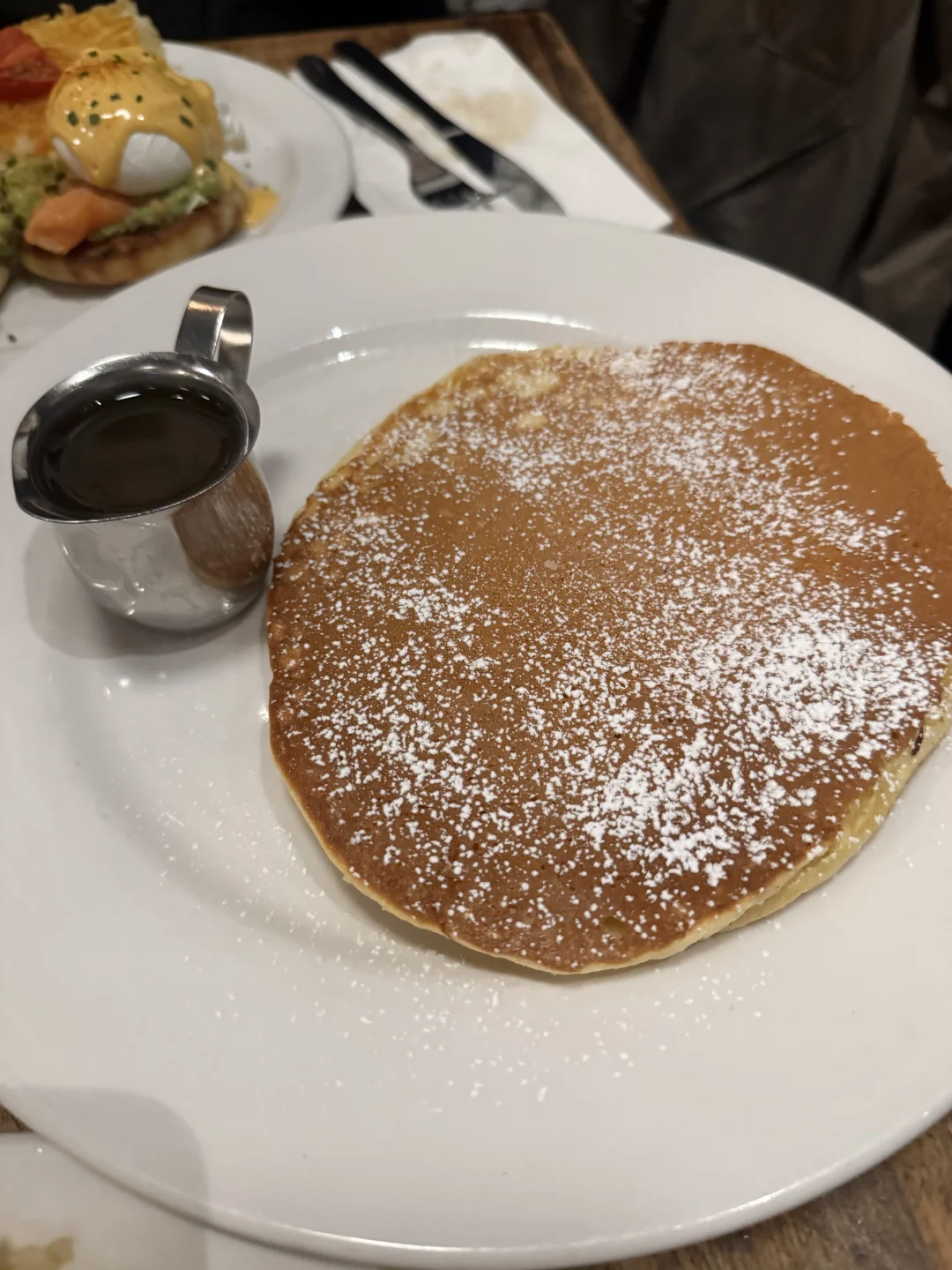 [种草R]【pancake】应该是“硬”那一些列的风格,并没有传统早餐店的好吃,还是white spot的更好吃,甚至麦当劳的也比这个好吃