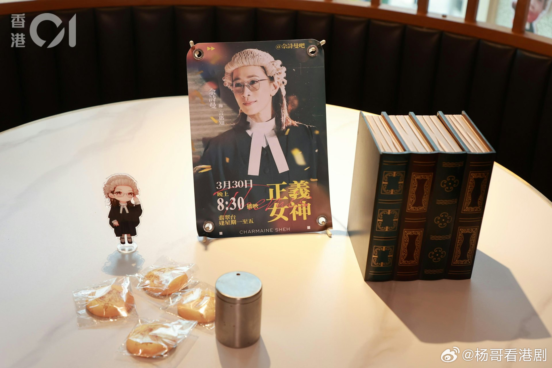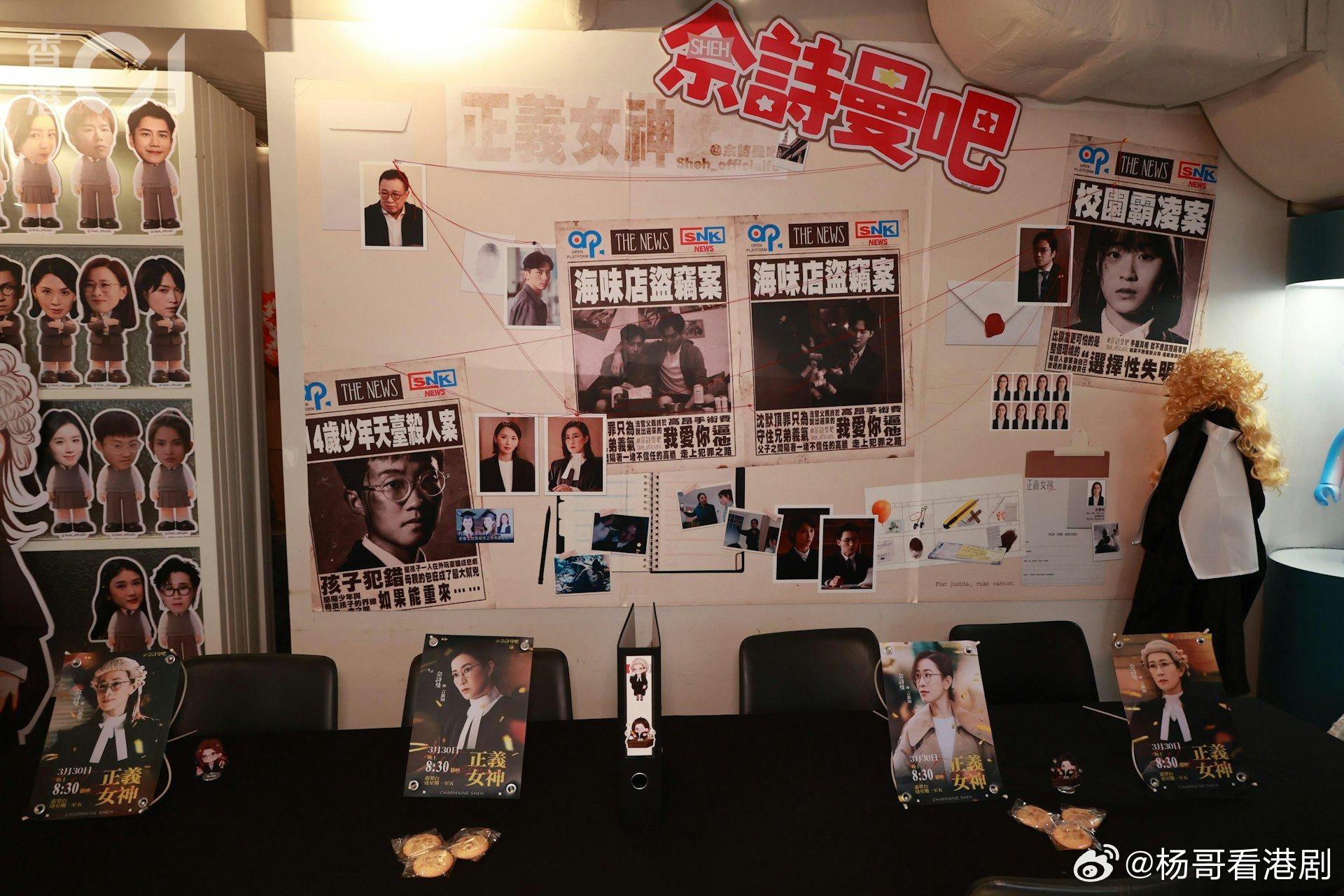 《正義女神》粉絲自製「佘詩曼主題咖啡店」 茶敘佈置超用心.TVB新劇《正義女神》一眾演員,包括佘詩曼、陳煒、馬貫東、蔣祖曼、劉倬昕、吳文懿、羅皓誼、張天妮、胡敏芝、劉展霆、潘靜文、陳若思、黃浩霆等,今日(4月4日)齊集尖東出席一場別開生面的茶敘。原來這次活動並非由劇組官方安排,而是佘詩曼的粉絲會自發為偶像及全體演員精心籌辦,處處可見心思。