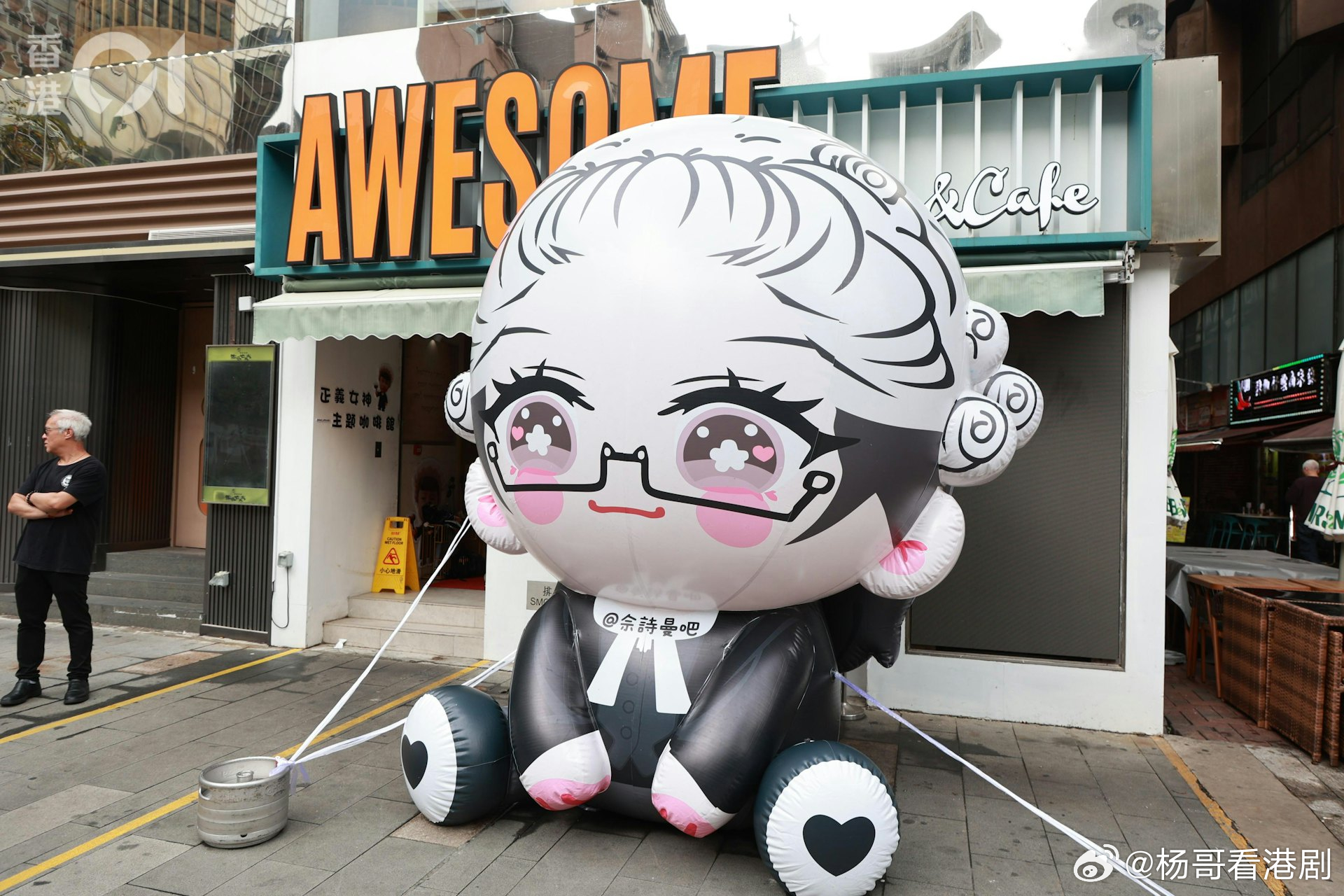 活動在一間咖啡店內舉行,粉絲將場地徹底打造成「佘詩曼主題咖啡店」。店外豎立了巨型充氣公仔,面向大街的落地玻璃窗貼滿了大量佘詩曼的卡通造型貼紙,相當搶眼。店內則掛滿《正義女神》劇集海報,更擺放了多位劇中演員的小型紙板人偶,方便大家打卡合照。