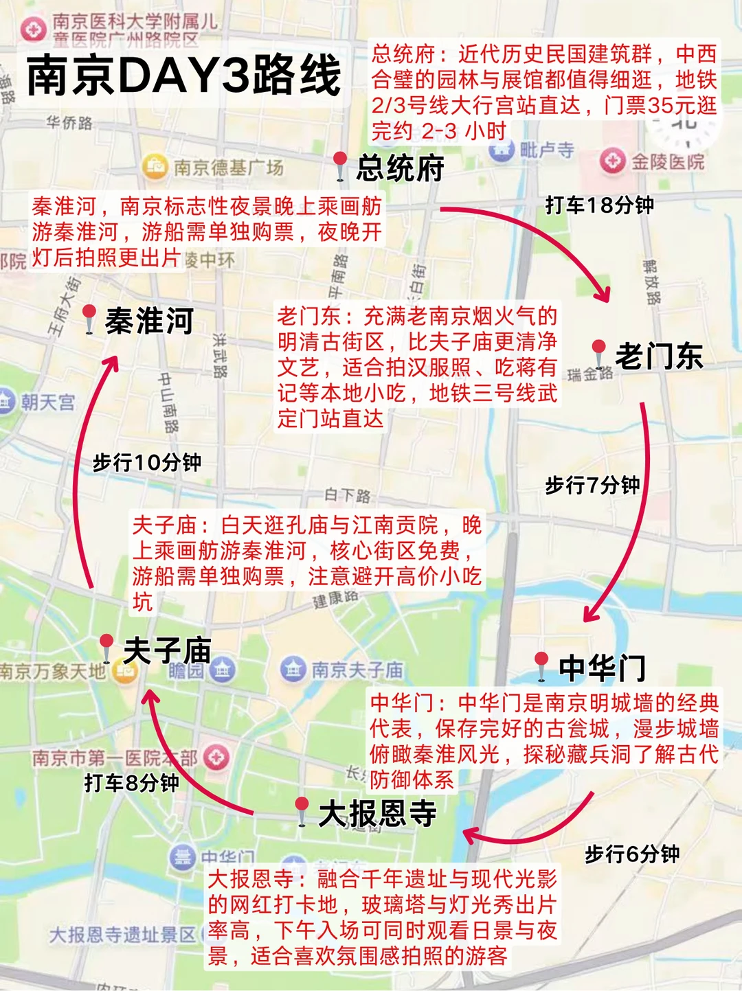 ✅ 路线:总统府→老门东→中华门→大报恩寺→夫子庙→秦淮河