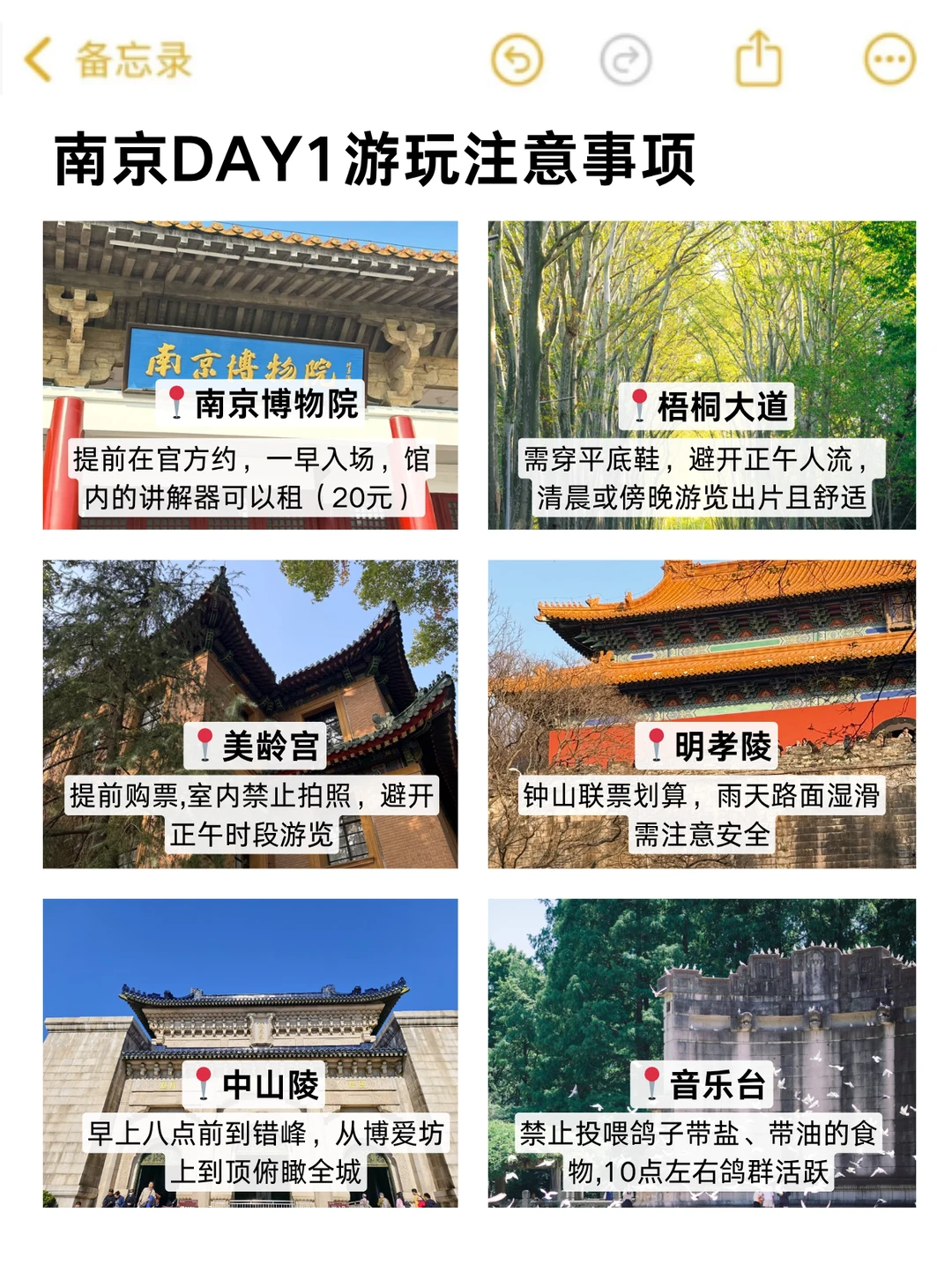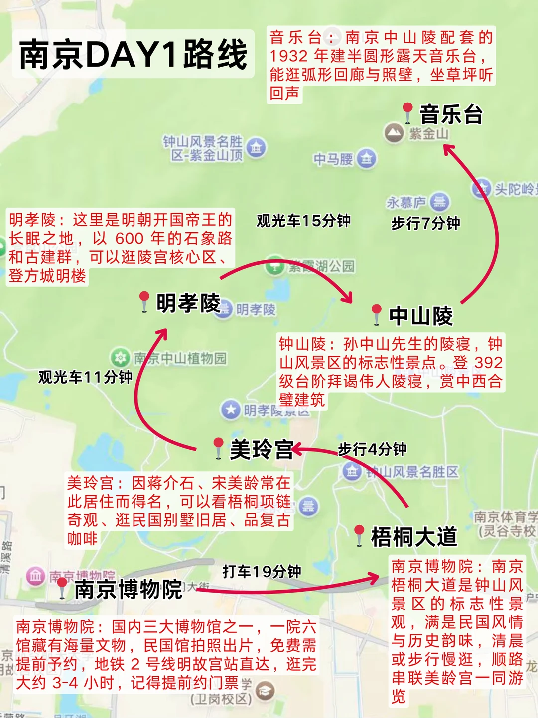 ✅ 路线:南京博物院→梧桐大道→美龄宫→中山陵→明孝陵→音乐台