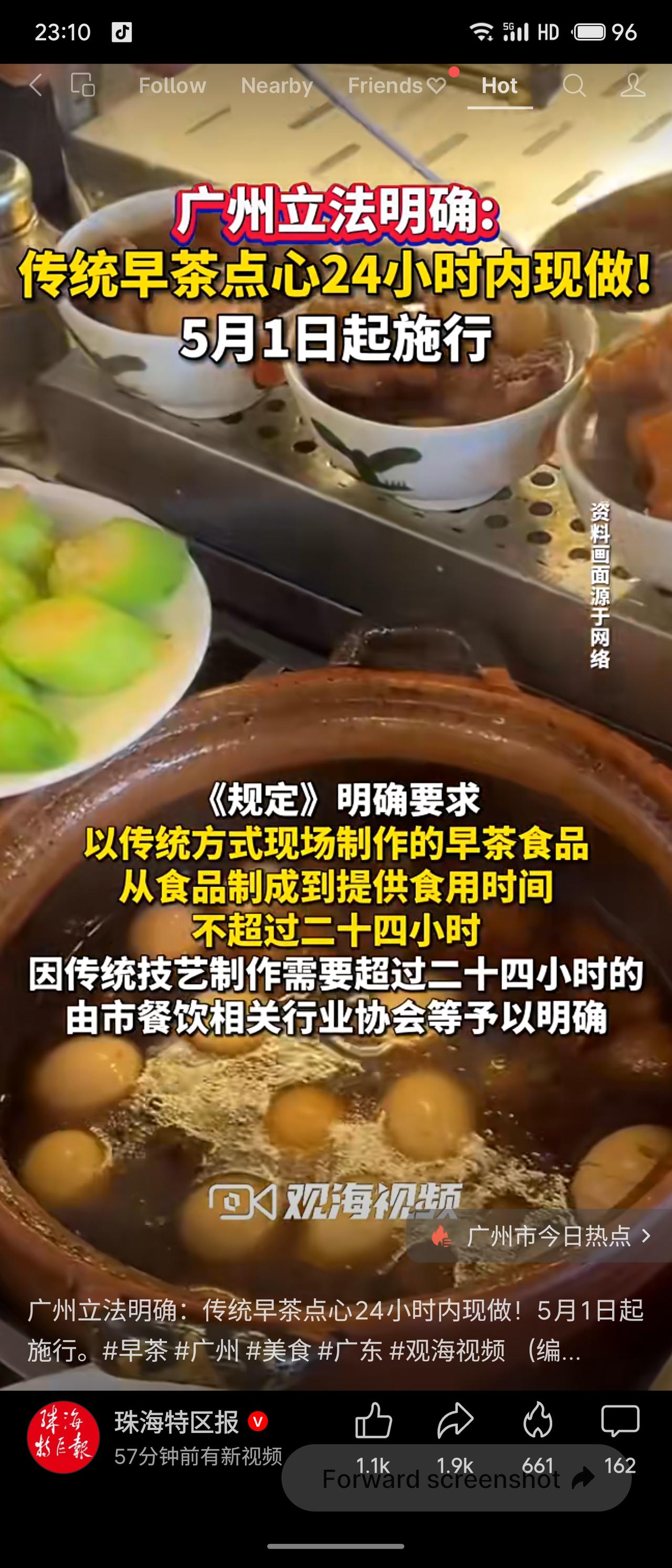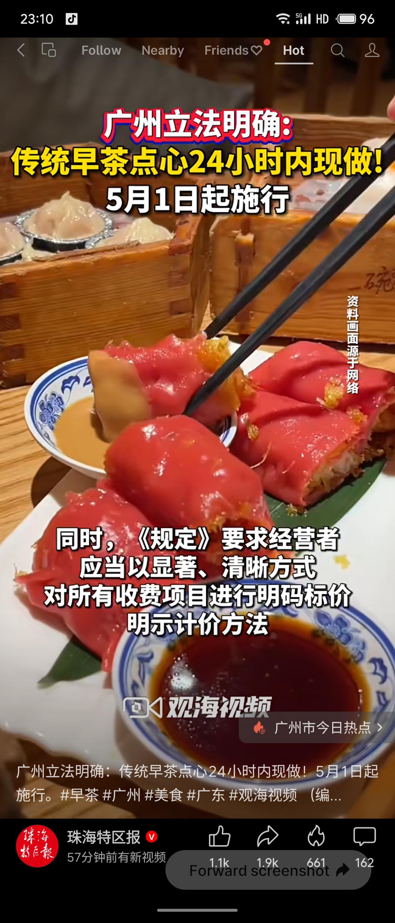 广州市人大常委会于2026年4月1日发布《广州早茶传承保护规定》,自5月1日起施行。其中明确:传统早茶点心须在制成后24小时内现做,因特殊技艺需超时的由行业协会明确;经营者需显著明码标价,收取茶位费应提供红茶、绿茶、乌龙茶、普洱茶、菊花茶等多种选择。该规定首次界定了“传统早茶”与“非传统方式制作”的界限。此举既保护了广式早茶的非遗技艺与饮食文化,也保障了消费者知情权和选择权,有助于提升品质、杜绝预制点心冒充现做,值得推广。