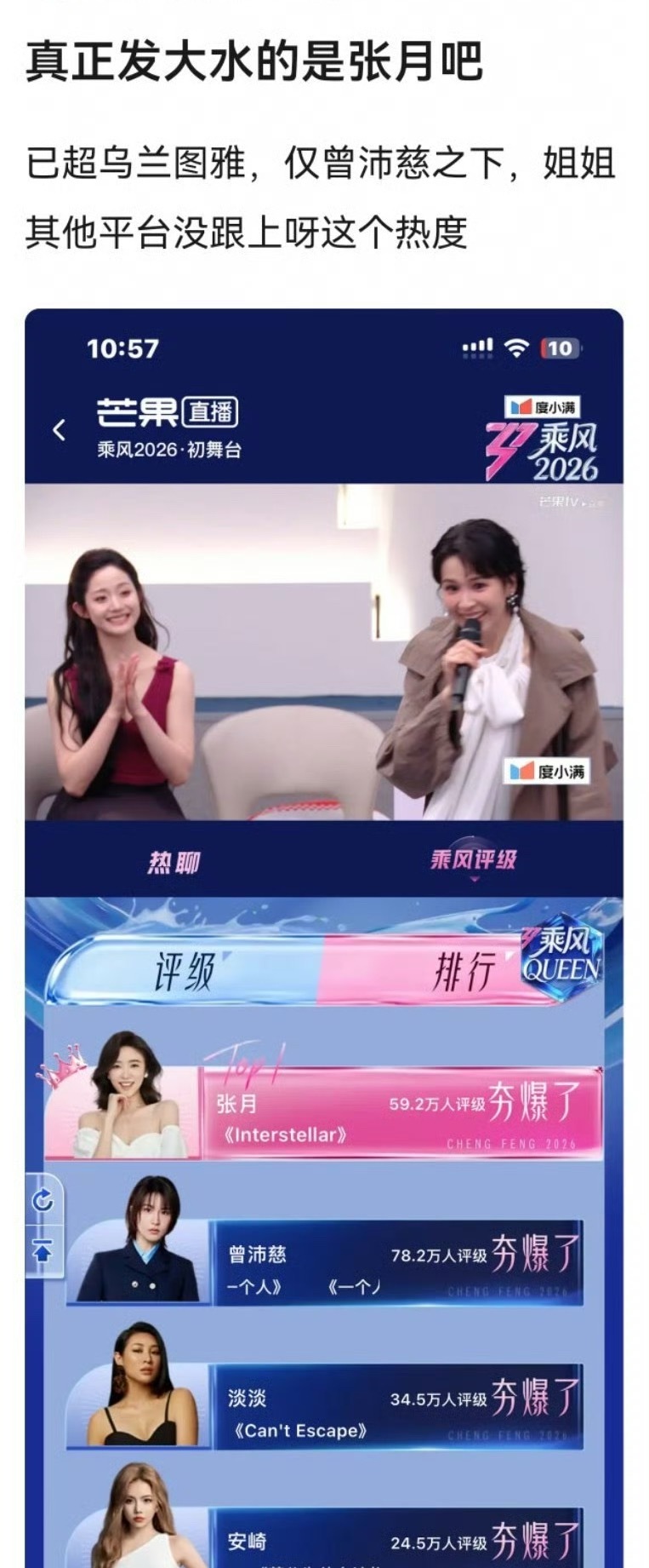 张月陈瑶坐一起张月陈瑶瑶台月下你们两能不能合作一下就当是为了我浪姐第二场和第一场