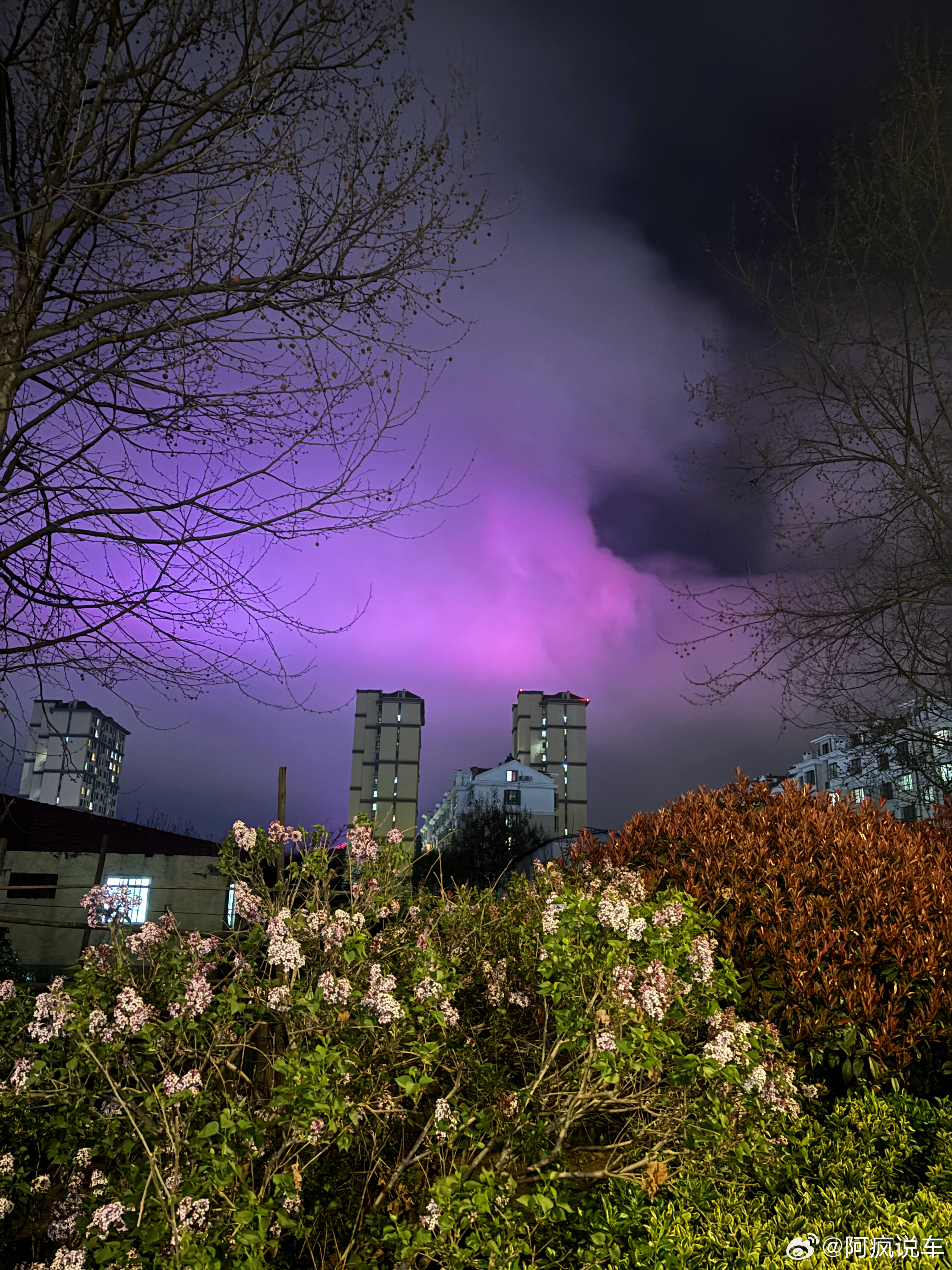 昨天晚上拍的,天一会一个颜色,有人知道这是啥情况吗?